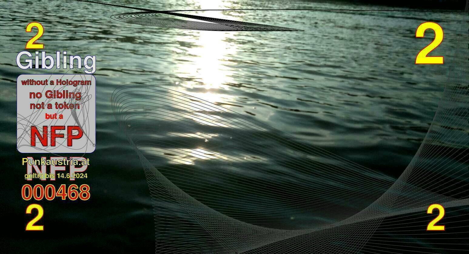| Caption-Abstract | NFP stays for "Non Fungible Picture". The 11th Edition of our community currency Gibling is built on series of unique pictures. Each image file is unique by serial number and has a own a sha256 checksum. This data is stored in the metatags of the next picture of the series. In the metatags of the first image of the series you can find this text signed in our cryptocurrency Givecoin, created in 2014; NFPs is a fork of the Givecoin blockchain. With the NFPs we extend our ECO system in the context of process art. In this way, the Infolab of the Stadtwerkstatt wants to show another critical position on the logical truths in the new digital information society. The serial number of this image is 000468 and can also be found in the metatag "Original Transmission Reference". The checksum of the previous image is 1ed66be7fdb6667418108ee868edd4648f49a82c6ee9c4b8bd1582b1266ce8bd and is also stored in the metatag: "Edit Status". Your bitcoinaddress: 16xWiH9uivb5PX3wKepFBo3J4jwXG7iGRH. Your Givecoinaddress:Is printed on the back of the Gibling. To keep the process open, visit https://gibling.stwst.at and follow the instructions." |