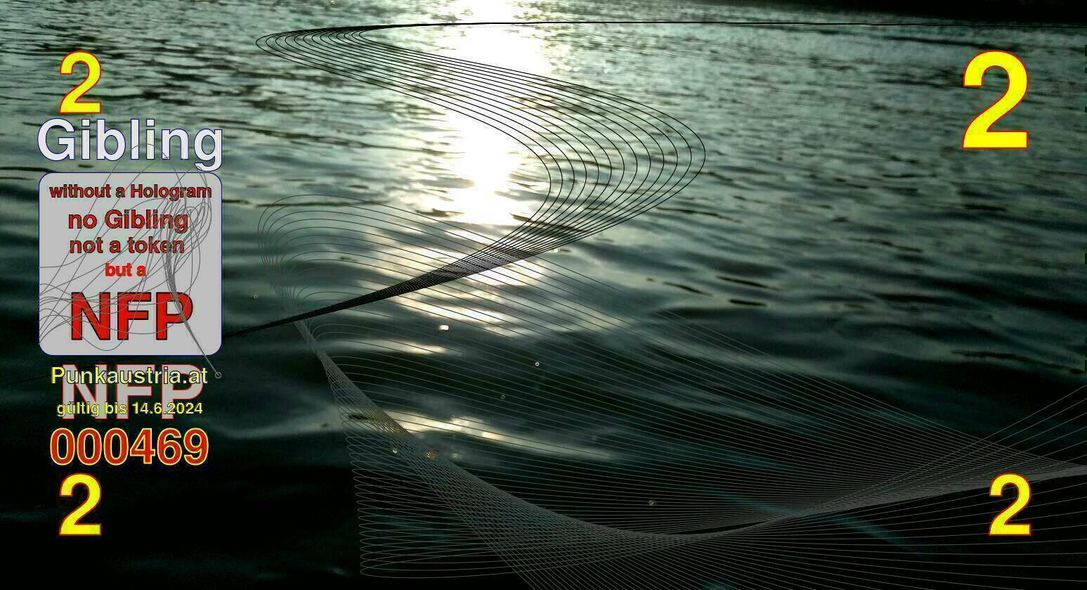 | Caption-Abstract | NFP stays for "Non Fungible Picture". The 11th Edition of our community currency Gibling is built on series of unique pictures. Each image file is unique by serial number and has a own a sha256 checksum. This data is stored in the metatags of the next picture of the series. In the metatags of the first image of the series you can find this text signed in our cryptocurrency Givecoin, created in 2014; NFPs is a fork of the Givecoin blockchain. With the NFPs we extend our ECO system in the context of process art. In this way, the Infolab of the Stadtwerkstatt wants to show another critical position on the logical truths in the new digital information society. The serial number of this image is 000469 and can also be found in the metatag "Original Transmission Reference". The checksum of the previous image is c4f7989f15eeb3cfdb66e130e794a9fbee365a788e2e8b416a0d384a7dbb7f08 and is also stored in the metatag: "Edit Status". Your bitcoinaddress: 16yGyZgitgH6Eba1QJ411UcNXUxkSsikzE. Your Givecoinaddress:Is printed on the back of the Gibling. To keep the process open, visit https://gibling.stwst.at and follow the instructions." |