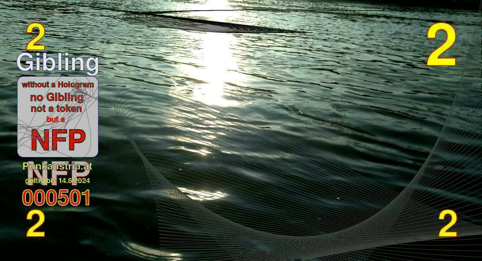 | Caption-Abstract | NFP stays for "Non Fungible Picture". The 11th Edition of our community currency Gibling is built on series of unique pictures. Each image file is unique by serial number and has a own a sha256 checksum. This data is stored in the metatags of the next picture of the series. In the metatags of the first image of the series you can find this text signed in our cryptocurrency Givecoin, created in 2014; NFPs is a fork of the Givecoin blockchain. With the NFPs we extend our ECO system in the context of process art. In this way, the Infolab of the Stadtwerkstatt wants to show another critical position on the logical truths in the new digital information society. The serial number of this image is 000501 and can also be found in the metatag "Original Transmission Reference". The checksum of the previous image is 934c8c0e9e6f308dd153ee7c2c853d3cfdff76fea4c979162cc3453be550e7b9 and is also stored in the metatag: "Edit Status". Your bitcoinaddress: 17M2cnYUcMpYWJDHuj2QjfT8jSvP2q1SRm. Your Givecoinaddress:Is printed on the back of the Gibling. To keep the process open, visit https://gibling.stwst.at and follow the instructions." |
