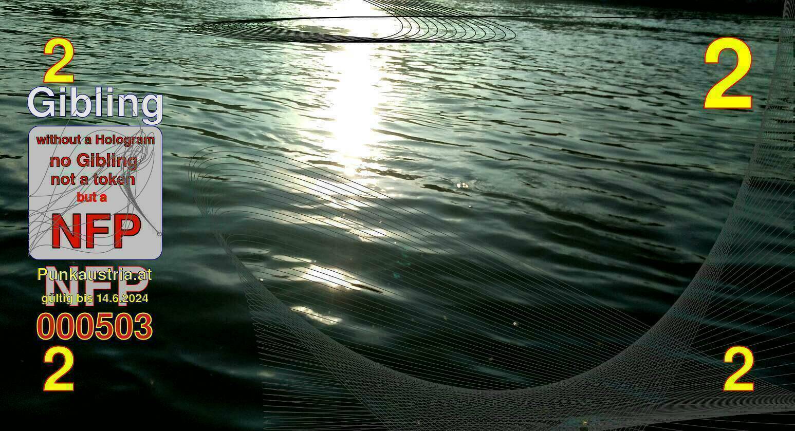 | Caption-Abstract | NFP stays for "Non Fungible Picture". The 11th Edition of our community currency Gibling is built on series of unique pictures. Each image file is unique by serial number and has a own a sha256 checksum. This data is stored in the metatags of the next picture of the series. In the metatags of the first image of the series you can find this text signed in our cryptocurrency Givecoin, created in 2014; NFPs is a fork of the Givecoin blockchain. With the NFPs we extend our ECO system in the context of process art. In this way, the Infolab of the Stadtwerkstatt wants to show another critical position on the logical truths in the new digital information society. The serial number of this image is 000503 and can also be found in the metatag "Original Transmission Reference". The checksum of the previous image is 5a3240662ad8e97300d82133edd21e6fa535d200d481035027e7ba4ebd04e0b7 and is also stored in the metatag: "Edit Status". Your bitcoinaddress: 17MXtJkASSVMuAUDM1BjMK8uDuUNxtZ4r3. Your Givecoinaddress:Is printed on the back of the Gibling. To keep the process open, visit https://gibling.stwst.at and follow the instructions." |