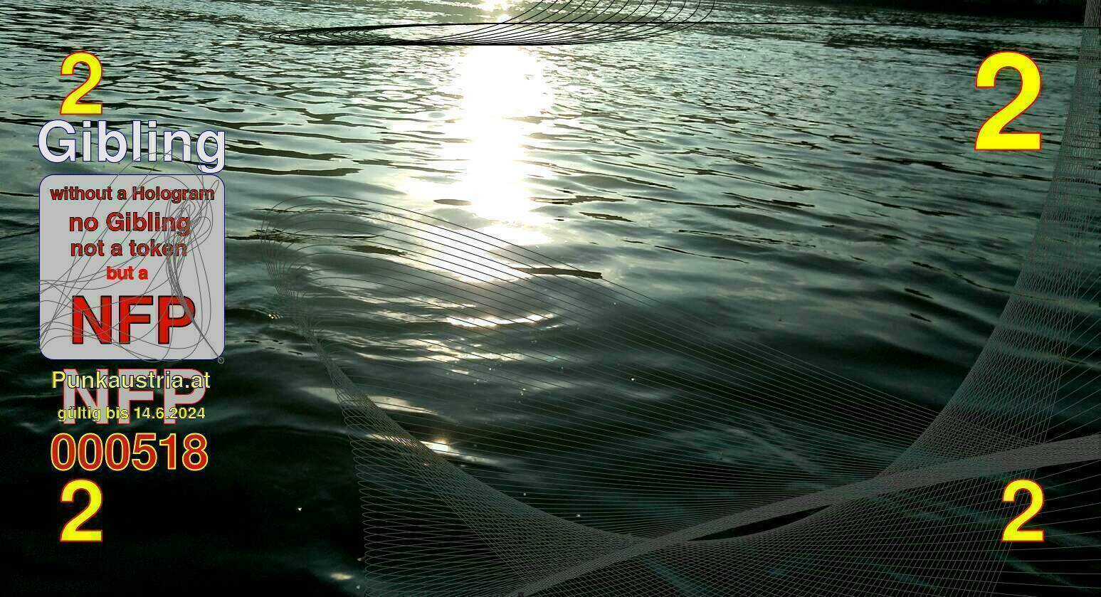 | Caption-Abstract | NFP stays for "Non Fungible Picture". The 11th Edition of our community currency Gibling is built on series of unique pictures. Each image file is unique by serial number and has a own a sha256 checksum. This data is stored in the metatags of the next picture of the series. In the metatags of the first image of the series you can find this text signed in our cryptocurrency Givecoin, created in 2014; NFPs is a fork of the Givecoin blockchain. With the NFPs we extend our ECO system in the context of process art. In this way, the Infolab of the Stadtwerkstatt wants to show another critical position on the logical truths in the new digital information society. The serial number of this image is 000518 and can also be found in the metatag "Original Transmission Reference". The checksum of the previous image is f56ce9aeec0faea43303ea4ce89e6d8328df63e655e1678a6fdb99499b726cdb and is also stored in the metatag: "Edit Status". Your bitcoinaddress: 17djFnLBLshcXd8L8radwDV5osihS7evY4. Your Givecoinaddress:Is printed on the back of the Gibling. To keep the process open, visit https://gibling.stwst.at and follow the instructions." |
