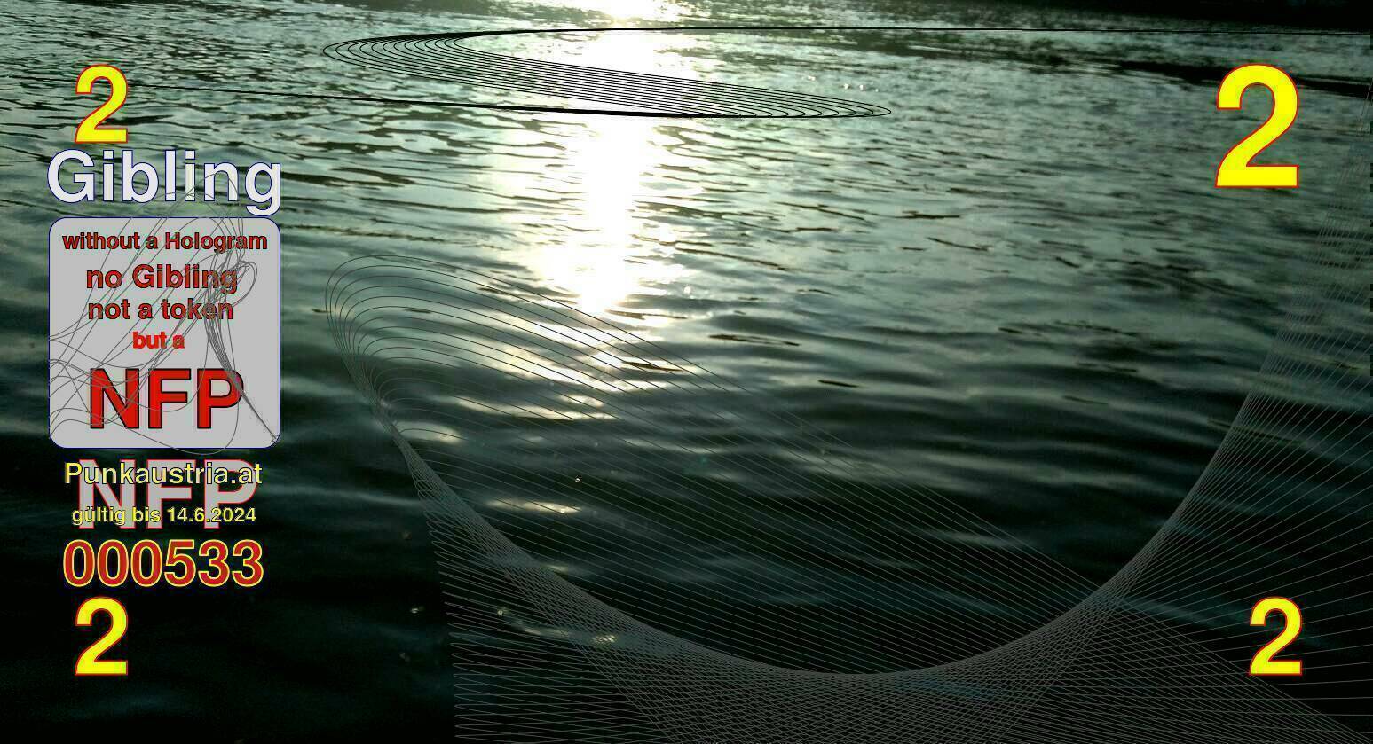 | Caption-Abstract | NFP stays for "Non Fungible Picture". The 11th Edition of our community currency Gibling is built on series of unique pictures. Each image file is unique by serial number and has a own a sha256 checksum. This data is stored in the metatags of the next picture of the series. In the metatags of the first image of the series you can find this text signed in our cryptocurrency Givecoin, created in 2014; NFPs is a fork of the Givecoin blockchain. With the NFPs we extend our ECO system in the context of process art. In this way, the Infolab of the Stadtwerkstatt wants to show another critical position on the logical truths in the new digital information society. The serial number of this image is 000533 and can also be found in the metatag "Original Transmission Reference". The checksum of the previous image is 00b2dfa01093dd8b317ffd829d2413bccb33c2715c6da8af0252173873b23855 and is also stored in the metatag: "Edit Status". Your bitcoinaddress: 17iDAnn8nnAAnmmZdjcQUF5MtL1Bz1L7rk. Your Givecoinaddress:Is printed on the back of the Gibling. To keep the process open, visit https://gibling.stwst.at and follow the instructions." |