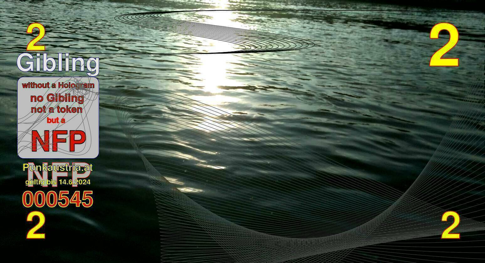 | Caption-Abstract | NFP stays for "Non Fungible Picture". The 11th Edition of our community currency Gibling is built on series of unique pictures. Each image file is unique by serial number and has a own a sha256 checksum. This data is stored in the metatags of the next picture of the series. In the metatags of the first image of the series you can find this text signed in our cryptocurrency Givecoin, created in 2014; NFPs is a fork of the Givecoin blockchain. With the NFPs we extend our ECO system in the context of process art. In this way, the Infolab of the Stadtwerkstatt wants to show another critical position on the logical truths in the new digital information society. The serial number of this image is 000545 and can also be found in the metatag "Original Transmission Reference". The checksum of the previous image is 4ad55530d9186f7afb34cbf8b9aa099c5b3313e10c74bdff27aa1bb19505f71b and is also stored in the metatag: "Edit Status". Your bitcoinaddress: 17r4VSjGhSALjer3eigXx5ZwAa3GJkb8GY. Your Givecoinaddress:Is printed on the back of the Gibling. To keep the process open, visit https://gibling.stwst.at and follow the instructions." |
