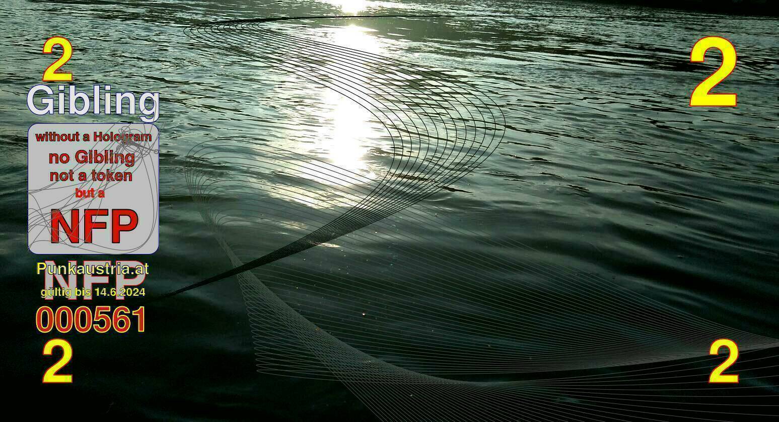 | Caption-Abstract | NFP stays for "Non Fungible Picture". The 11th Edition of our community currency Gibling is built on series of unique pictures. Each image file is unique by serial number and has a own a sha256 checksum. This data is stored in the metatags of the next picture of the series. In the metatags of the first image of the series you can find this text signed in our cryptocurrency Givecoin, created in 2014; NFPs is a fork of the Givecoin blockchain. With the NFPs we extend our ECO system in the context of process art. In this way, the Infolab of the Stadtwerkstatt wants to show another critical position on the logical truths in the new digital information society. The serial number of this image is 000561 and can also be found in the metatag "Original Transmission Reference". The checksum of the previous image is db10e8fdd49e89f815d0c062d9ce242cecddbc0957fa31f8933b198fbab13b11 and is also stored in the metatag: "Edit Status". Your bitcoinaddress: 188KBFCz1PgfMad3PrY3aq5k3P76j3XrRv. Your Givecoinaddress:Is printed on the back of the Gibling. To keep the process open, visit https://gibling.stwst.at and follow the instructions." |