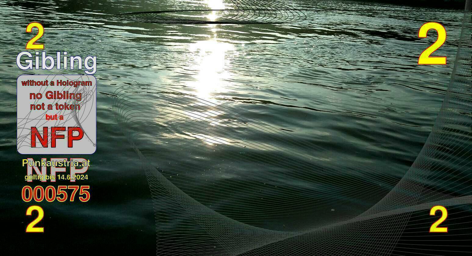 | Caption-Abstract | NFP stays for "Non Fungible Picture". The 11th Edition of our community currency Gibling is built on series of unique pictures. Each image file is unique by serial number and has a own a sha256 checksum. This data is stored in the metatags of the next picture of the series. In the metatags of the first image of the series you can find this text signed in our cryptocurrency Givecoin, created in 2014; NFPs is a fork of the Givecoin blockchain. With the NFPs we extend our ECO system in the context of process art. In this way, the Infolab of the Stadtwerkstatt wants to show another critical position on the logical truths in the new digital information society. The serial number of this image is 000575 and can also be found in the metatag "Original Transmission Reference". The checksum of the previous image is 0c7b39ae3e6b04b3c66350e148c614b23fbe37b78392439ec1adf07840e159e7 and is also stored in the metatag: "Edit Status". Your bitcoinaddress: 18Fvd71GoEe3kTz4hr662xuYvjyYLkLghB. Your Givecoinaddress:Is printed on the back of the Gibling. To keep the process open, visit https://gibling.stwst.at and follow the instructions." |