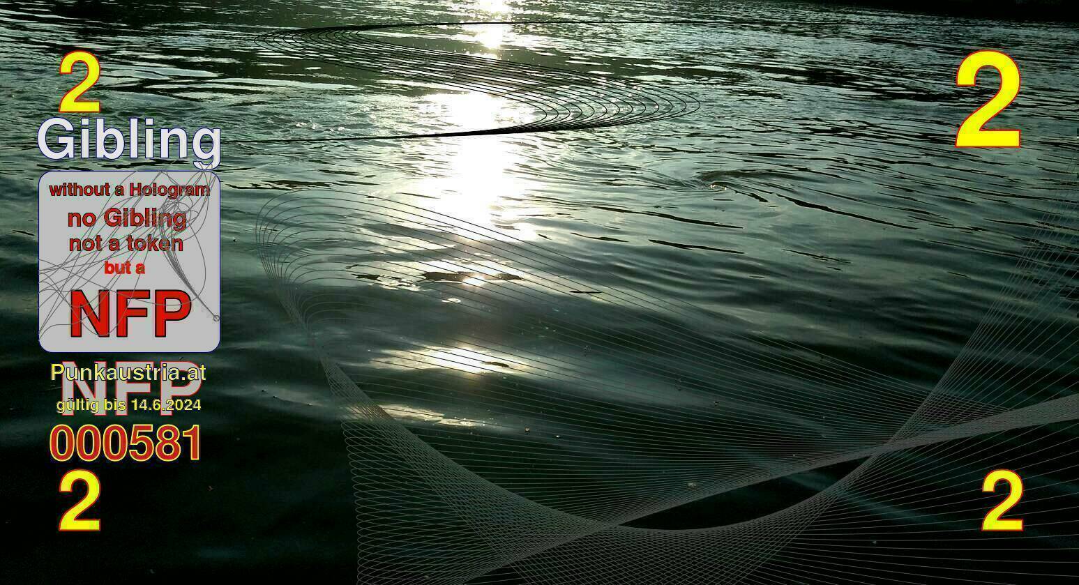 | Caption-Abstract | NFP stays for "Non Fungible Picture". The 11th Edition of our community currency Gibling is built on series of unique pictures. Each image file is unique by serial number and has a own a sha256 checksum. This data is stored in the metatags of the next picture of the series. In the metatags of the first image of the series you can find this text signed in our cryptocurrency Givecoin, created in 2014; NFPs is a fork of the Givecoin blockchain. With the NFPs we extend our ECO system in the context of process art. In this way, the Infolab of the Stadtwerkstatt wants to show another critical position on the logical truths in the new digital information society. The serial number of this image is 000581 and can also be found in the metatag "Original Transmission Reference". The checksum of the previous image is 825595ad70a216c8fa3ee272381b044c11354ff19d151568ce2d644378da879d and is also stored in the metatag: "Edit Status". Your bitcoinaddress: 18JwpgA5SYQvFBi8YrCu3xooi7pGmgyRs9. Your Givecoinaddress:Is printed on the back of the Gibling. To keep the process open, visit https://gibling.stwst.at and follow the instructions." |