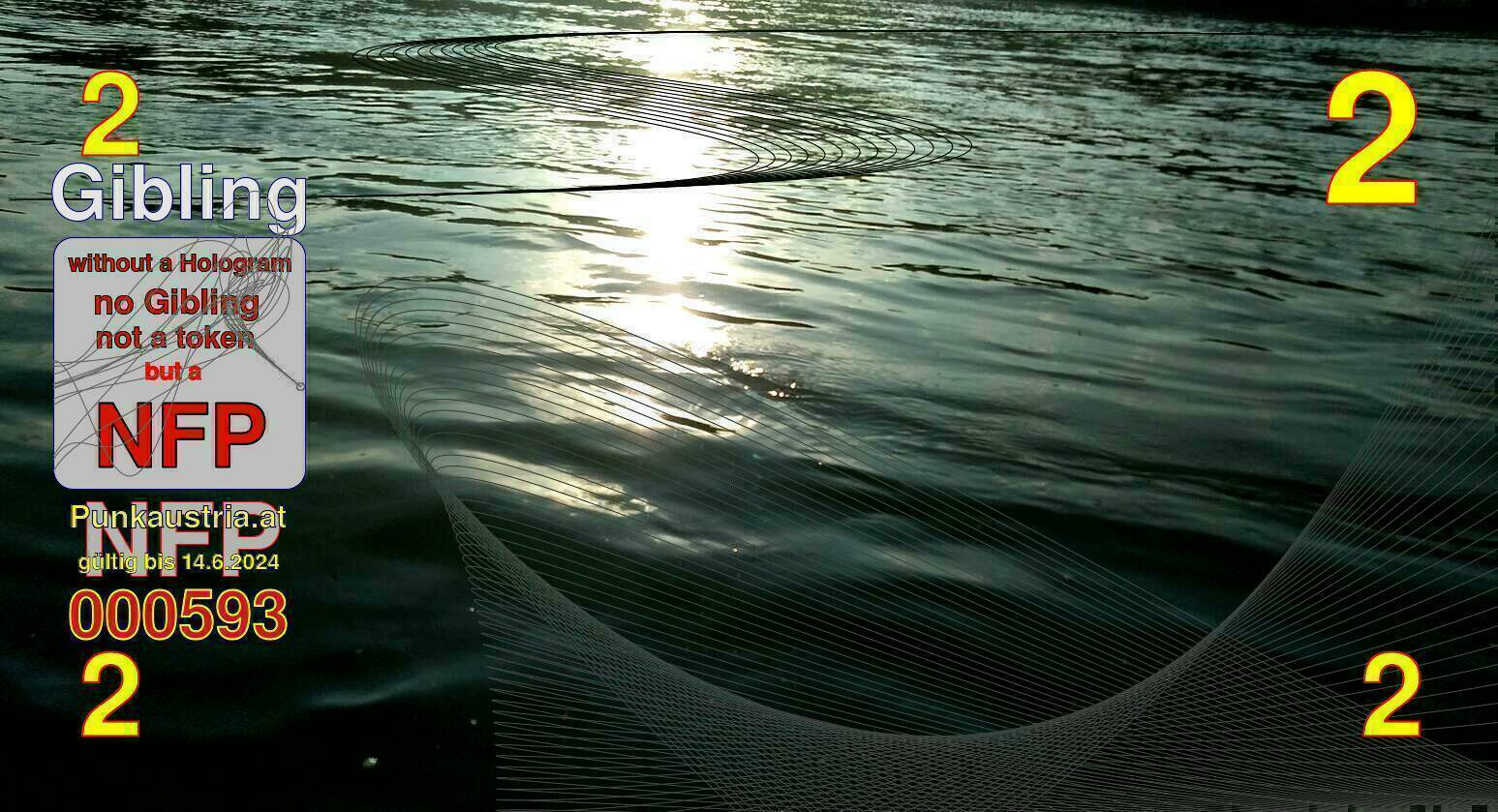 | Caption-Abstract | NFP stays for "Non Fungible Picture". The 11th Edition of our community currency Gibling is built on series of unique pictures. Each image file is unique by serial number and has a own a sha256 checksum. This data is stored in the metatags of the next picture of the series. In the metatags of the first image of the series you can find this text signed in our cryptocurrency Givecoin, created in 2014; NFPs is a fork of the Givecoin blockchain. With the NFPs we extend our ECO system in the context of process art. In this way, the Infolab of the Stadtwerkstatt wants to show another critical position on the logical truths in the new digital information society. The serial number of this image is 000593 and can also be found in the metatag "Original Transmission Reference". The checksum of the previous image is 5558270ff8f30e8f7af6d8a99fccd86e164907591ce5e46c6e34675e9eecc086 and is also stored in the metatag: "Edit Status". Your bitcoinaddress: 18dBb27w4yAFMdJQyY13LaWx2oYrk9tJGP. Your Givecoinaddress:Is printed on the back of the Gibling. To keep the process open, visit https://gibling.stwst.at and follow the instructions." |
