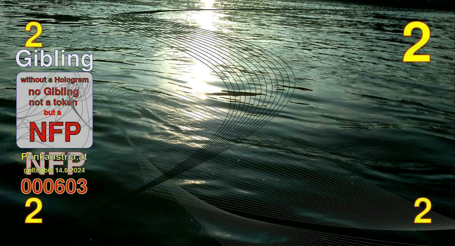 | Caption-Abstract | NFP stays for "Non Fungible Picture". The 11th Edition of our community currency Gibling is built on series of unique pictures. Each image file is unique by serial number and has a own a sha256 checksum. This data is stored in the metatags of the next picture of the series. In the metatags of the first image of the series you can find this text signed in our cryptocurrency Givecoin, created in 2014; NFPs is a fork of the Givecoin blockchain. With the NFPs we extend our ECO system in the context of process art. In this way, the Infolab of the Stadtwerkstatt wants to show another critical position on the logical truths in the new digital information society. The serial number of this image is 000603 and can also be found in the metatag "Original Transmission Reference". The checksum of the previous image is f02332feffa5a52fcc0580fb9dc5a9d123e90ece938fb6f502691d5695aa087d and is also stored in the metatag: "Edit Status". Your bitcoinaddress: 18hoVx849VhUp8vCkRkSVzVRkWAexJf7fk. Your Givecoinaddress:Is printed on the back of the Gibling. To keep the process open, visit https://gibling.stwst.at and follow the instructions." |
