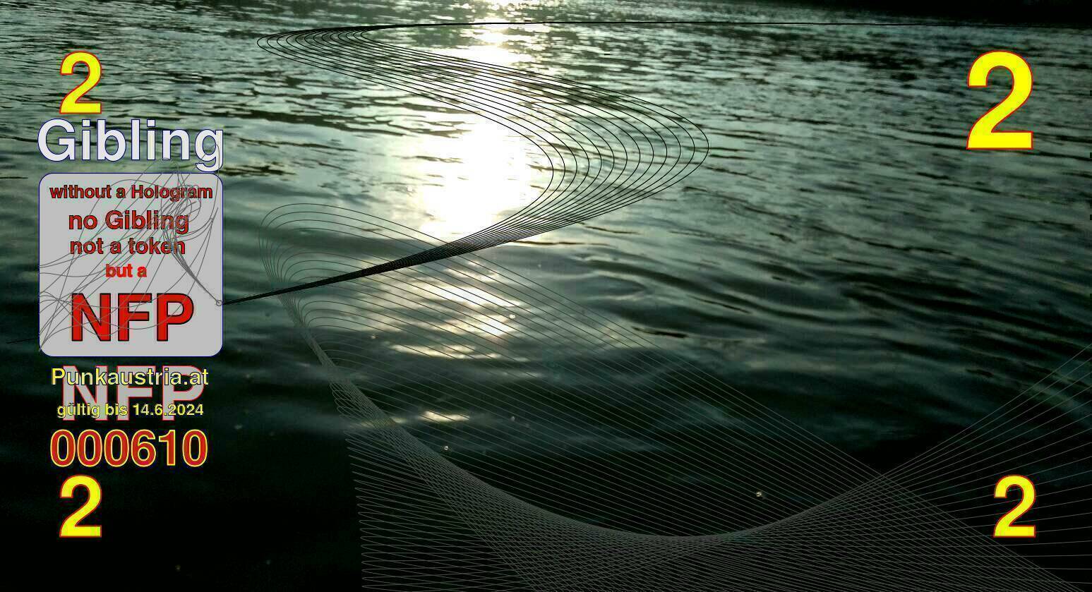 | Caption-Abstract | NFP stays for "Non Fungible Picture". The 11th Edition of our community currency Gibling is built on series of unique pictures. Each image file is unique by serial number and has a own a sha256 checksum. This data is stored in the metatags of the next picture of the series. In the metatags of the first image of the series you can find this text signed in our cryptocurrency Givecoin, created in 2014; NFPs is a fork of the Givecoin blockchain. With the NFPs we extend our ECO system in the context of process art. In this way, the Infolab of the Stadtwerkstatt wants to show another critical position on the logical truths in the new digital information society. The serial number of this image is 000610 and can also be found in the metatag "Original Transmission Reference". The checksum of the previous image is 901076cedad86ba905f95d464660b2f57e5c8459b9599b55b4324c82e3693b91 and is also stored in the metatag: "Edit Status". Your bitcoinaddress: 18sH9ySg3Zn456o4UukubYxBrJ7J5ZaAPJ. Your Givecoinaddress:Is printed on the back of the Gibling. To keep the process open, visit https://gibling.stwst.at and follow the instructions." |