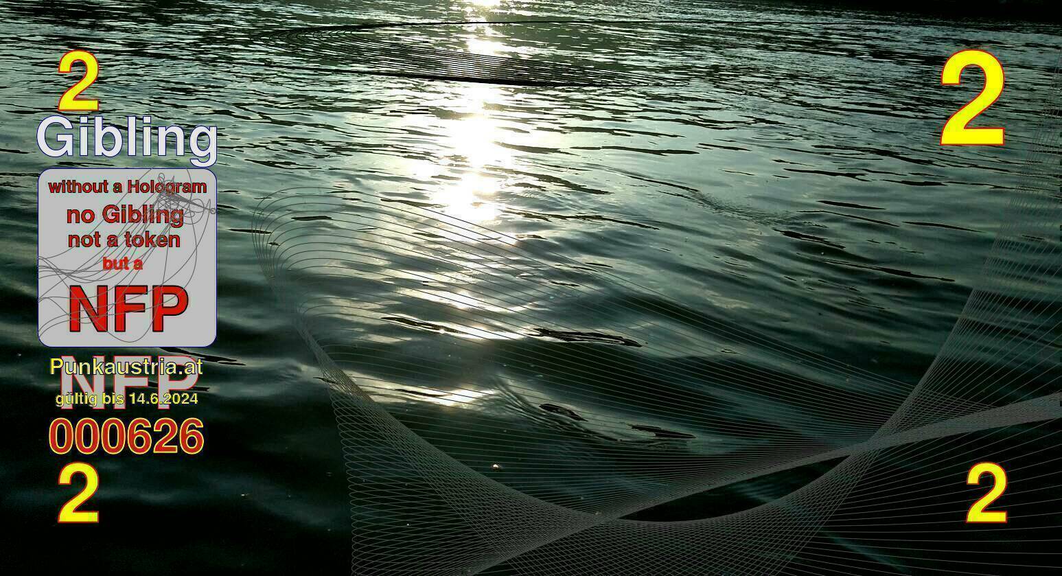 | Caption-Abstract | NFP stays for "Non Fungible Picture". The 11th Edition of our community currency Gibling is built on series of unique pictures. Each image file is unique by serial number and has a own a sha256 checksum. This data is stored in the metatags of the next picture of the series. In the metatags of the first image of the series you can find this text signed in our cryptocurrency Givecoin, created in 2014; NFPs is a fork of the Givecoin blockchain. With the NFPs we extend our ECO system in the context of process art. In this way, the Infolab of the Stadtwerkstatt wants to show another critical position on the logical truths in the new digital information society. The serial number of this image is 000626 and can also be found in the metatag "Original Transmission Reference". The checksum of the previous image is f3af8ac9176b2cf8476abb59d2268b1fb5dafd9295281f24ff01a8611ab3d7f6 and is also stored in the metatag: "Edit Status". Your bitcoinaddress: 193N6mkhoEeBAtGzK674p9ENLcfyWYdjeP. Your Givecoinaddress:Is printed on the back of the Gibling. To keep the process open, visit https://gibling.stwst.at and follow the instructions." |
