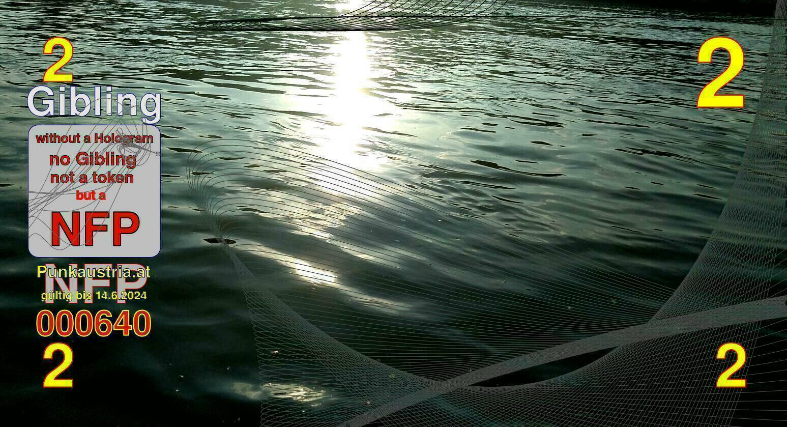 | Caption-Abstract | NFP stays for "Non Fungible Picture". The 11th Edition of our community currency Gibling is built on series of unique pictures. Each image file is unique by serial number and has a own a sha256 checksum. This data is stored in the metatags of the next picture of the series. In the metatags of the first image of the series you can find this text signed in our cryptocurrency Givecoin, created in 2014; NFPs is a fork of the Givecoin blockchain. With the NFPs we extend our ECO system in the context of process art. In this way, the Infolab of the Stadtwerkstatt wants to show another critical position on the logical truths in the new digital information society. The serial number of this image is 000640 and can also be found in the metatag "Original Transmission Reference". The checksum of the previous image is d181764ef2a499f1ad7f8bec83f04de4a20d42f84abe053719dd999f47872756 and is also stored in the metatag: "Edit Status". Your bitcoinaddress: 19E9gji7PKrYwYmPYJqHgxVnKM4wzinWtU. Your Givecoinaddress:Is printed on the back of the Gibling. To keep the process open, visit https://gibling.stwst.at and follow the instructions." |