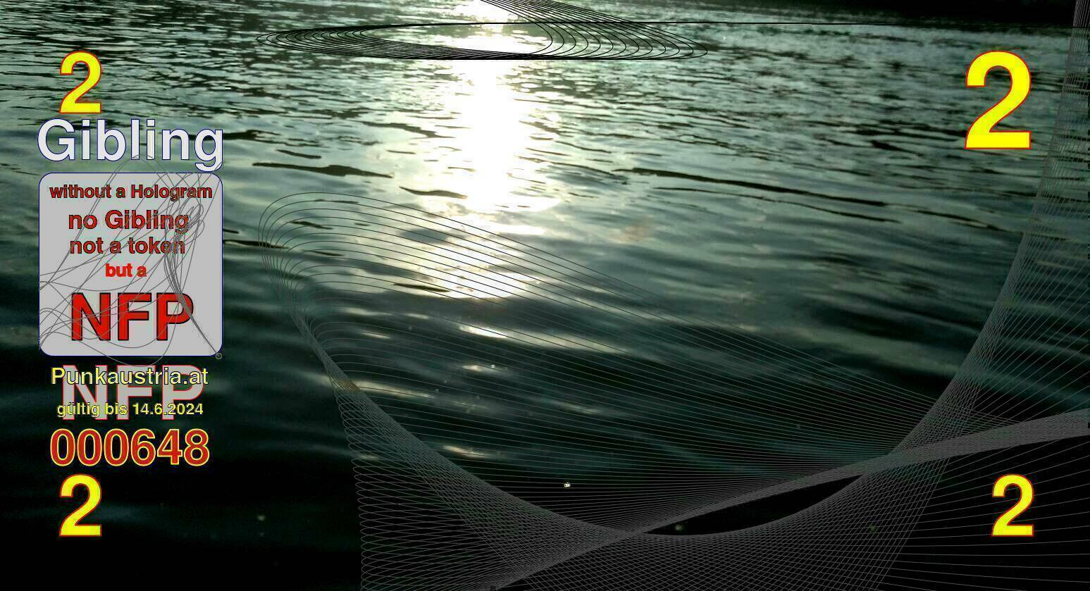 | Caption-Abstract | NFP stays for "Non Fungible Picture". The 11th Edition of our community currency Gibling is built on series of unique pictures. Each image file is unique by serial number and has a own a sha256 checksum. This data is stored in the metatags of the next picture of the series. In the metatags of the first image of the series you can find this text signed in our cryptocurrency Givecoin, created in 2014; NFPs is a fork of the Givecoin blockchain. With the NFPs we extend our ECO system in the context of process art. In this way, the Infolab of the Stadtwerkstatt wants to show another critical position on the logical truths in the new digital information society. The serial number of this image is 000648 and can also be found in the metatag "Original Transmission Reference". The checksum of the previous image is cb669db3abaf26afbe4c9f064de097a7ef30a01b747d3b192e9fc9511dd1302b and is also stored in the metatag: "Edit Status". Your bitcoinaddress: 19Lk7dqpRE8eu14T7NCTqSzDPiaYU2bTvR. Your Givecoinaddress:Is printed on the back of the Gibling. To keep the process open, visit https://gibling.stwst.at and follow the instructions." |