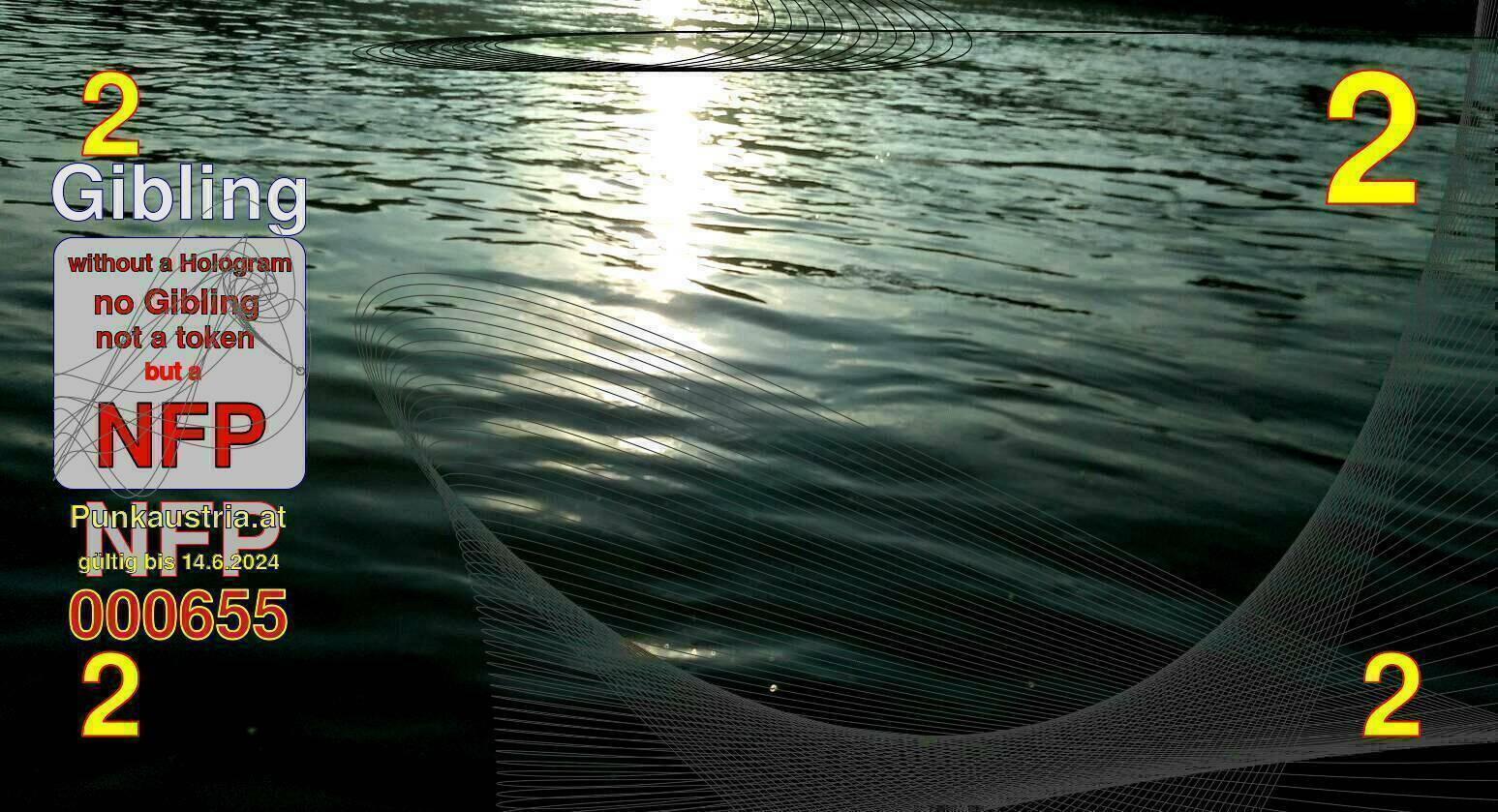 | Caption-Abstract | NFP stays for "Non Fungible Picture". The 11th Edition of our community currency Gibling is built on series of unique pictures. Each image file is unique by serial number and has a own a sha256 checksum. This data is stored in the metatags of the next picture of the series. In the metatags of the first image of the series you can find this text signed in our cryptocurrency Givecoin, created in 2014; NFPs is a fork of the Givecoin blockchain. With the NFPs we extend our ECO system in the context of process art. In this way, the Infolab of the Stadtwerkstatt wants to show another critical position on the logical truths in the new digital information society. The serial number of this image is 000655 and can also be found in the metatag "Original Transmission Reference". The checksum of the previous image is a67b956f32b5b057ee6062a192409a5ae28edc3e7e3f10961f4bdd15c023ed76 and is also stored in the metatag: "Edit Status". Your bitcoinaddress: 19RjpCkv7rfJ2MT9G3aAqQSLgkSzQtkEM1. Your Givecoinaddress:Is printed on the back of the Gibling. To keep the process open, visit https://gibling.stwst.at and follow the instructions." |