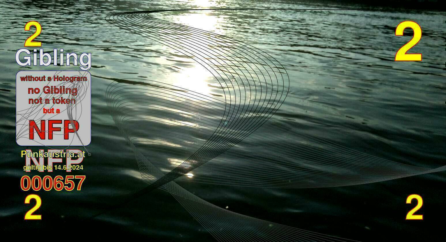 | Caption-Abstract | NFP stays for "Non Fungible Picture". The 11th Edition of our community currency Gibling is built on series of unique pictures. Each image file is unique by serial number and has a own a sha256 checksum. This data is stored in the metatags of the next picture of the series. In the metatags of the first image of the series you can find this text signed in our cryptocurrency Givecoin, created in 2014; NFPs is a fork of the Givecoin blockchain. With the NFPs we extend our ECO system in the context of process art. In this way, the Infolab of the Stadtwerkstatt wants to show another critical position on the logical truths in the new digital information society. The serial number of this image is 000657 and can also be found in the metatag "Original Transmission Reference". The checksum of the previous image is d6af06f713b1f76df0c04cf743eec4d2914bc2ecbbecbb7007997800d6d0f712 and is also stored in the metatag: "Edit Status". Your bitcoinaddress: 19TyJbpBbaXvfcXtLJrqZN65pxYsRVkZ8M. Your Givecoinaddress:Is printed on the back of the Gibling. To keep the process open, visit https://gibling.stwst.at and follow the instructions." |
