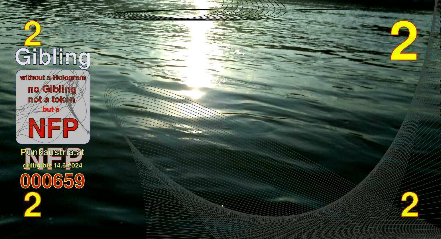 | Caption-Abstract | NFP stays for "Non Fungible Picture". The 11th Edition of our community currency Gibling is built on series of unique pictures. Each image file is unique by serial number and has a own a sha256 checksum. This data is stored in the metatags of the next picture of the series. In the metatags of the first image of the series you can find this text signed in our cryptocurrency Givecoin, created in 2014; NFPs is a fork of the Givecoin blockchain. With the NFPs we extend our ECO system in the context of process art. In this way, the Infolab of the Stadtwerkstatt wants to show another critical position on the logical truths in the new digital information society. The serial number of this image is 000659 and can also be found in the metatag "Original Transmission Reference". The checksum of the previous image is 8d862bfb099ad1accc5a04007dc0f6c7cc8acccbff95c2305bb2124971fc9850 and is also stored in the metatag: "Edit Status". Your bitcoinaddress: 19V4zS6vacX9LG2NaekHH2hKy7kLbF6Pna. Your Givecoinaddress:Is printed on the back of the Gibling. To keep the process open, visit https://gibling.stwst.at and follow the instructions." |