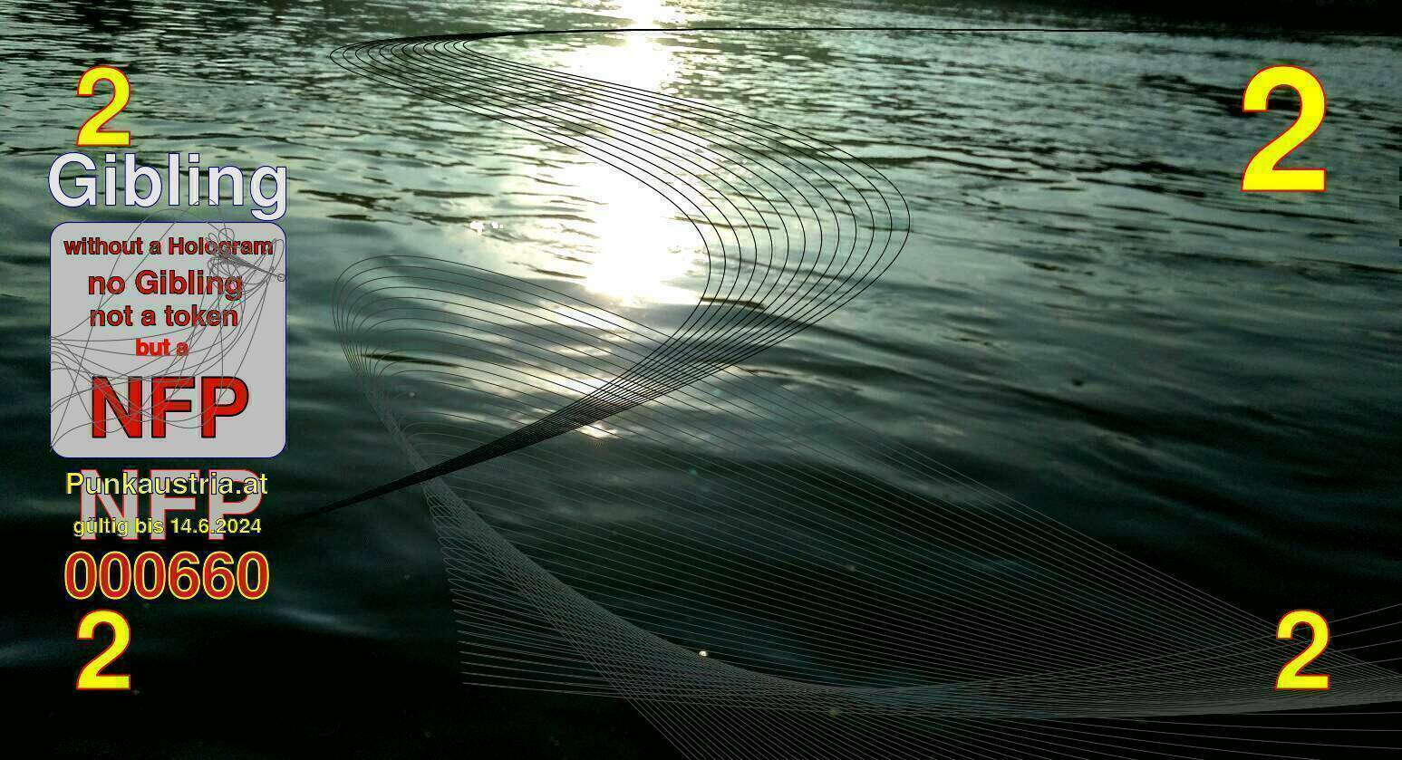 | Caption-Abstract | NFP stays for "Non Fungible Picture". The 11th Edition of our community currency Gibling is built on series of unique pictures. Each image file is unique by serial number and has a own a sha256 checksum. This data is stored in the metatags of the next picture of the series. In the metatags of the first image of the series you can find this text signed in our cryptocurrency Givecoin, created in 2014; NFPs is a fork of the Givecoin blockchain. With the NFPs we extend our ECO system in the context of process art. In this way, the Infolab of the Stadtwerkstatt wants to show another critical position on the logical truths in the new digital information society. The serial number of this image is 000660 and can also be found in the metatag "Original Transmission Reference". The checksum of the previous image is 5532324795f6219db96e6ba8247c7431e7a0ccbabf5fc0c7c8dc4efbf289a4ee and is also stored in the metatag: "Edit Status". Your bitcoinaddress: 19WJcvAf8zyJahaBg5wJwmW4fHWueRrxAT. Your Givecoinaddress:Is printed on the back of the Gibling. To keep the process open, visit https://gibling.stwst.at and follow the instructions." |