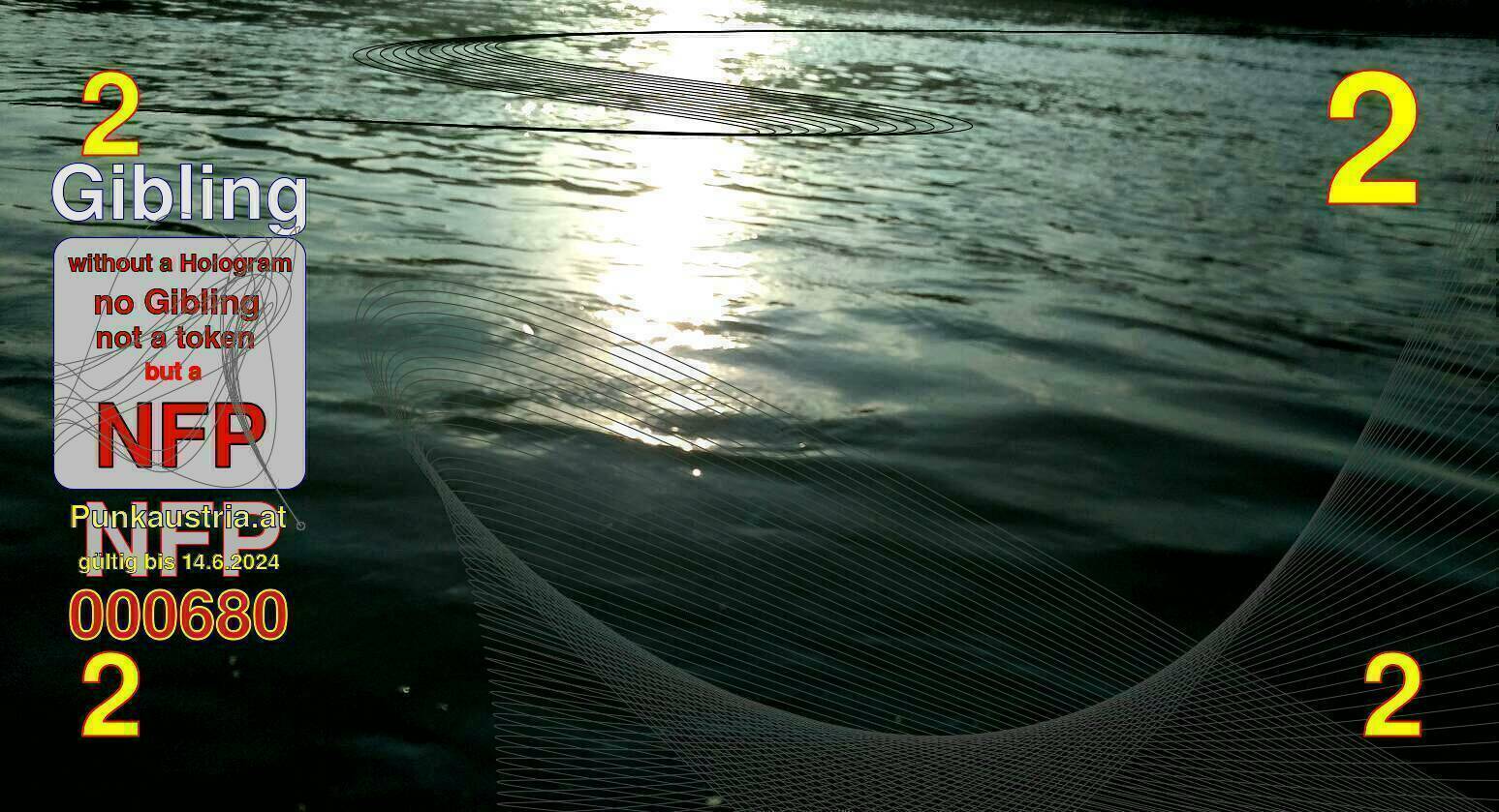 | Caption-Abstract | NFP stays for "Non Fungible Picture". The 11th Edition of our community currency Gibling is built on series of unique pictures. Each image file is unique by serial number and has a own a sha256 checksum. This data is stored in the metatags of the next picture of the series. In the metatags of the first image of the series you can find this text signed in our cryptocurrency Givecoin, created in 2014; NFPs is a fork of the Givecoin blockchain. With the NFPs we extend our ECO system in the context of process art. In this way, the Infolab of the Stadtwerkstatt wants to show another critical position on the logical truths in the new digital information society. The serial number of this image is 000680 and can also be found in the metatag "Original Transmission Reference". The checksum of the previous image is 51a4cef3eca14c5043c5d0543f1b2397b0294709b2e14da503dc28621a81c32b and is also stored in the metatag: "Edit Status". Your bitcoinaddress: 19i3cdP3CXVNsFhrTxrNwhQy1X2jv7Z3aX. Your Givecoinaddress:Is printed on the back of the Gibling. To keep the process open, visit https://gibling.stwst.at and follow the instructions." |