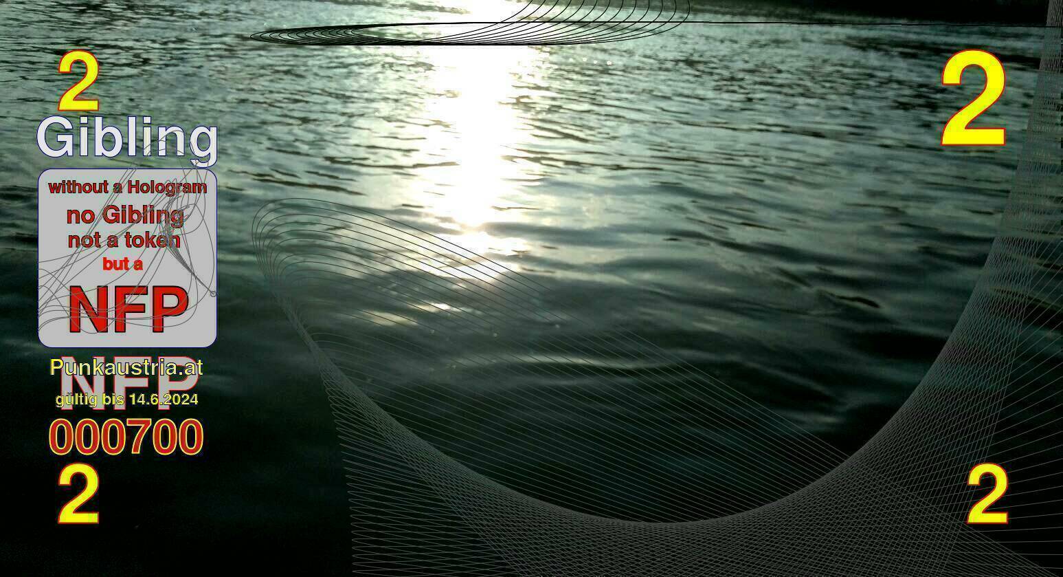 | Caption-Abstract | NFP stays for "Non Fungible Picture". The 11th Edition of our community currency Gibling is built on series of unique pictures. Each image file is unique by serial number and has a own a sha256 checksum. This data is stored in the metatags of the next picture of the series. In the metatags of the first image of the series you can find this text signed in our cryptocurrency Givecoin, created in 2014; NFPs is a fork of the Givecoin blockchain. With the NFPs we extend our ECO system in the context of process art. In this way, the Infolab of the Stadtwerkstatt wants to show another critical position on the logical truths in the new digital information society. The serial number of this image is 000700 and can also be found in the metatag "Original Transmission Reference". The checksum of the previous image is 303ea4a57fa30bba8d7318d2b1f20bbac45068cf352143454d55a9808f183852 and is also stored in the metatag: "Edit Status". Your bitcoinaddress: 19tmUBT6nMuxTYS6w9qxvrufCte1iqj9JS. Your Givecoinaddress:Is printed on the back of the Gibling. To keep the process open, visit https://gibling.stwst.at and follow the instructions." |