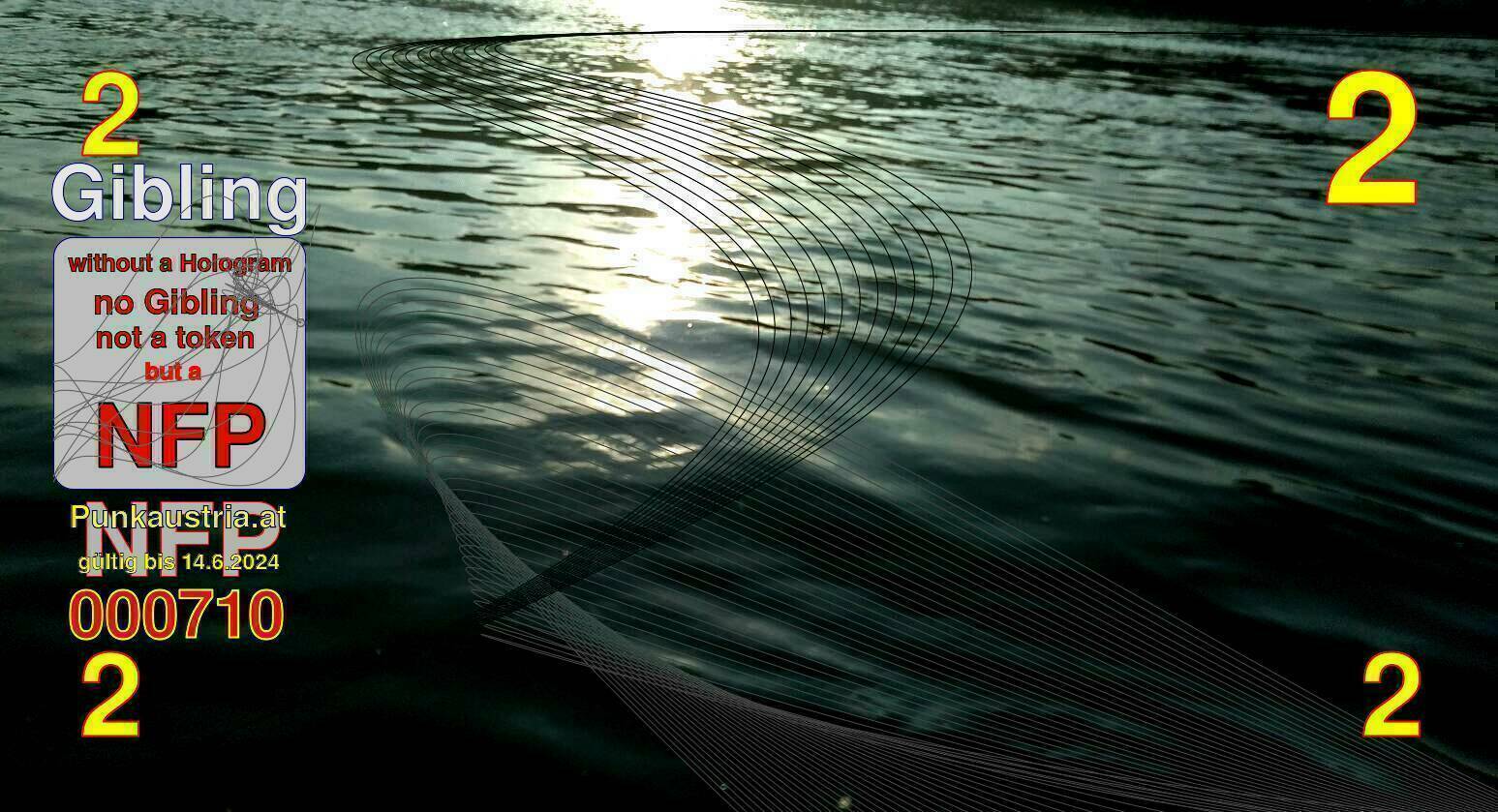 | Caption-Abstract | NFP stays for "Non Fungible Picture". The 11th Edition of our community currency Gibling is built on series of unique pictures. Each image file is unique by serial number and has a own a sha256 checksum. This data is stored in the metatags of the next picture of the series. In the metatags of the first image of the series you can find this text signed in our cryptocurrency Givecoin, created in 2014; NFPs is a fork of the Givecoin blockchain. With the NFPs we extend our ECO system in the context of process art. In this way, the Infolab of the Stadtwerkstatt wants to show another critical position on the logical truths in the new digital information society. The serial number of this image is 000710 and can also be found in the metatag "Original Transmission Reference". The checksum of the previous image is 8d50a60a476a8e8e6f7b5080e3b7948ac06a6dee9374e9711d00544c651d30ff and is also stored in the metatag: "Edit Status". Your bitcoinaddress: 19ziyVC1RzpQoMTu2T83x1H51EwpqtWu7D. Your Givecoinaddress:Is printed on the back of the Gibling. To keep the process open, visit https://gibling.stwst.at and follow the instructions." |