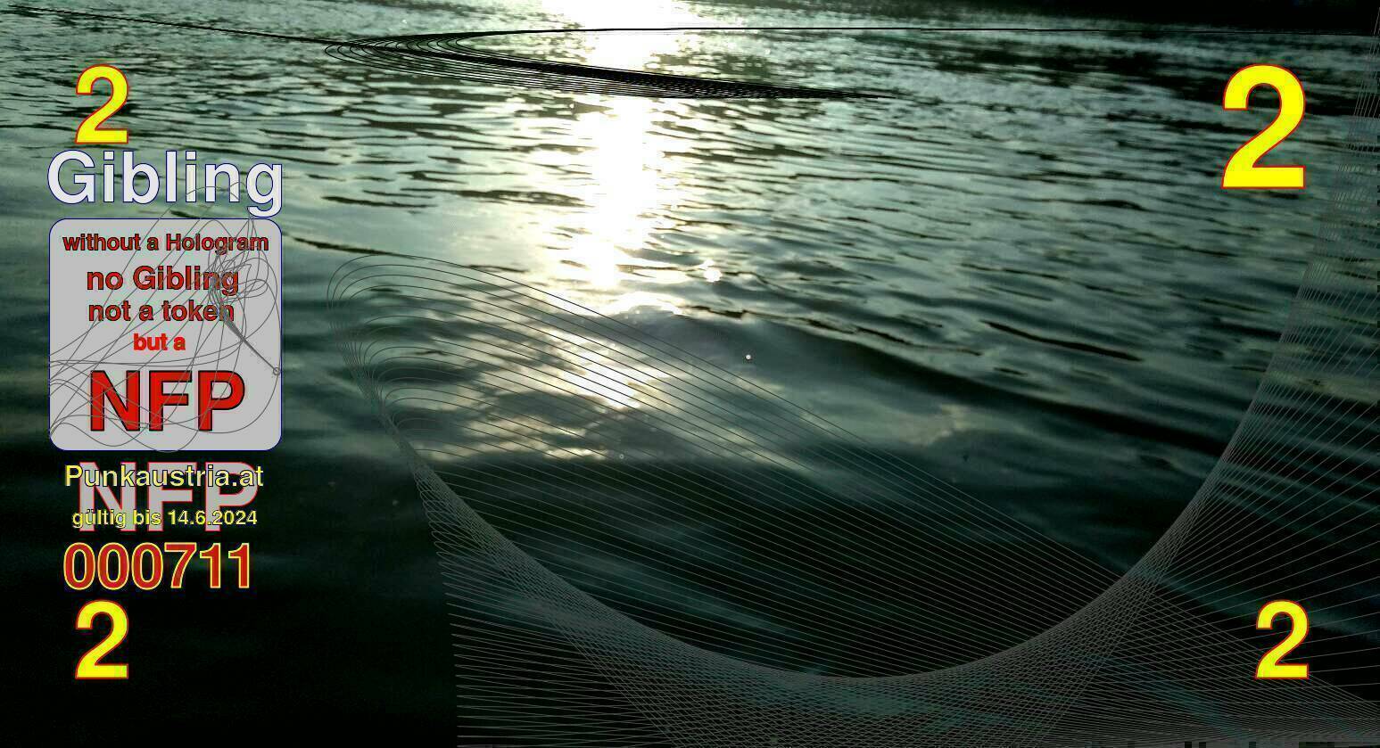 | Caption-Abstract | NFP stays for "Non Fungible Picture". The 11th Edition of our community currency Gibling is built on series of unique pictures. Each image file is unique by serial number and has a own a sha256 checksum. This data is stored in the metatags of the next picture of the series. In the metatags of the first image of the series you can find this text signed in our cryptocurrency Givecoin, created in 2014; NFPs is a fork of the Givecoin blockchain. With the NFPs we extend our ECO system in the context of process art. In this way, the Infolab of the Stadtwerkstatt wants to show another critical position on the logical truths in the new digital information society. The serial number of this image is 000711 and can also be found in the metatag "Original Transmission Reference". The checksum of the previous image is 29658f627dec84649dc07d986129859228357be9235f1f96f4e6e347fd4854cf and is also stored in the metatag: "Edit Status". Your bitcoinaddress: 1A17m8ZUNBpd2wBs7K7B5efXCZuviBHcdC. Your Givecoinaddress:Is printed on the back of the Gibling. To keep the process open, visit https://gibling.stwst.at and follow the instructions." |
