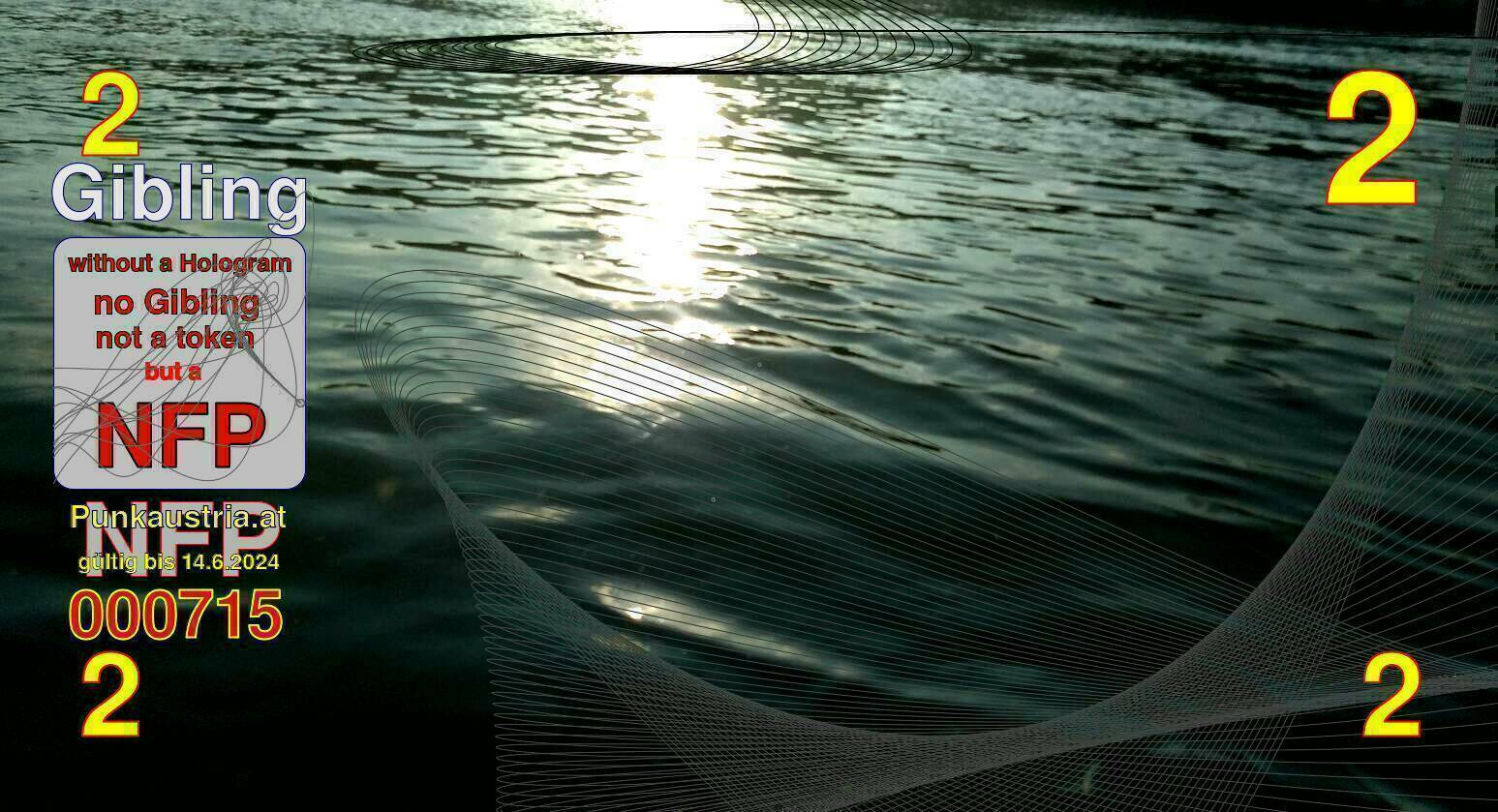 | Caption-Abstract | NFP stays for "Non Fungible Picture". The 11th Edition of our community currency Gibling is built on series of unique pictures. Each image file is unique by serial number and has a own a sha256 checksum. This data is stored in the metatags of the next picture of the series. In the metatags of the first image of the series you can find this text signed in our cryptocurrency Givecoin, created in 2014; NFPs is a fork of the Givecoin blockchain. With the NFPs we extend our ECO system in the context of process art. In this way, the Infolab of the Stadtwerkstatt wants to show another critical position on the logical truths in the new digital information society. The serial number of this image is 000715 and can also be found in the metatag "Original Transmission Reference". The checksum of the previous image is 9364f71dd15eec1aa2c641138fae7e4ce86138c022f63910fc956428a1c7e88f and is also stored in the metatag: "Edit Status". Your bitcoinaddress: 1A4k8PuB6PZcFV5Xxw1FapEREqydqWfAP8. Your Givecoinaddress:Is printed on the back of the Gibling. To keep the process open, visit https://gibling.stwst.at and follow the instructions." |