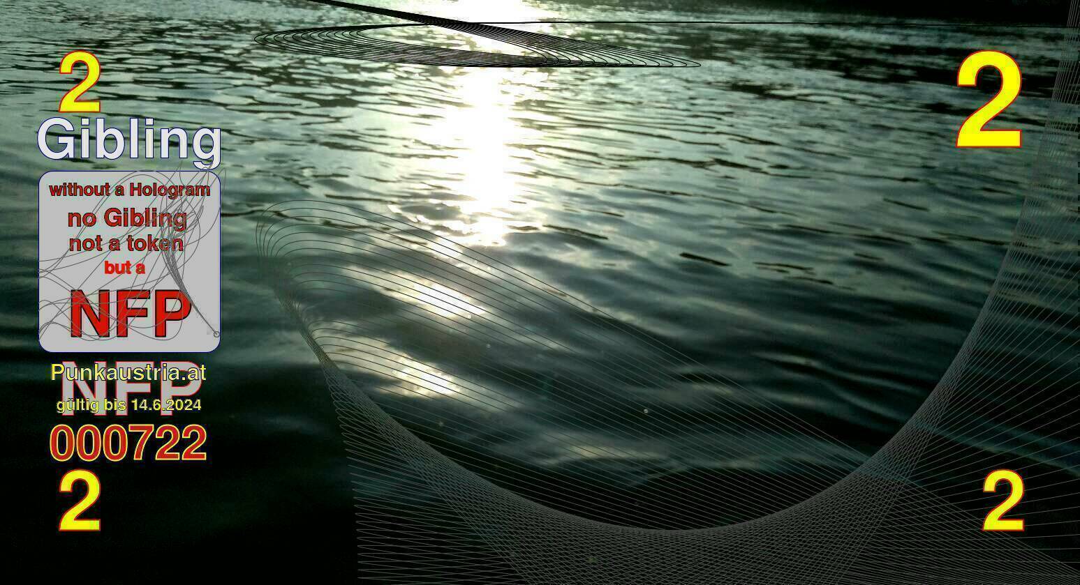 | Caption-Abstract | NFP stays for "Non Fungible Picture". The 11th Edition of our community currency Gibling is built on series of unique pictures. Each image file is unique by serial number and has a own a sha256 checksum. This data is stored in the metatags of the next picture of the series. In the metatags of the first image of the series you can find this text signed in our cryptocurrency Givecoin, created in 2014; NFPs is a fork of the Givecoin blockchain. With the NFPs we extend our ECO system in the context of process art. In this way, the Infolab of the Stadtwerkstatt wants to show another critical position on the logical truths in the new digital information society. The serial number of this image is 000722 and can also be found in the metatag "Original Transmission Reference". The checksum of the previous image is fa408229058fa840103f8ac8d5f1a15ef4378cae9ae7c7be394c9a81e62d5a65 and is also stored in the metatag: "Edit Status". Your bitcoinaddress: 1ABwABuT5ezHhGK9iUMwxnD8xRmWXHUmZm. Your Givecoinaddress:Is printed on the back of the Gibling. To keep the process open, visit https://gibling.stwst.at and follow the instructions." |