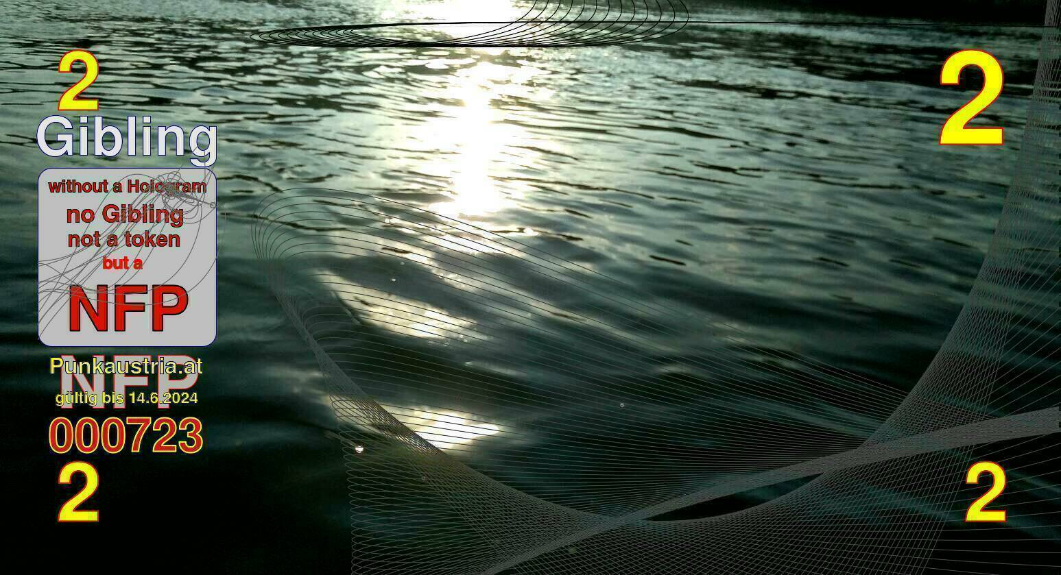 | Caption-Abstract | NFP stays for "Non Fungible Picture". The 11th Edition of our community currency Gibling is built on series of unique pictures. Each image file is unique by serial number and has a own a sha256 checksum. This data is stored in the metatags of the next picture of the series. In the metatags of the first image of the series you can find this text signed in our cryptocurrency Givecoin, created in 2014; NFPs is a fork of the Givecoin blockchain. With the NFPs we extend our ECO system in the context of process art. In this way, the Infolab of the Stadtwerkstatt wants to show another critical position on the logical truths in the new digital information society. The serial number of this image is 000723 and can also be found in the metatag "Original Transmission Reference". The checksum of the previous image is 54fb8d684780e95542806e23f15599502ed704f8e240f491b4c7ae35b2a51b0d and is also stored in the metatag: "Edit Status". Your bitcoinaddress: 1ACugnuXjthcKkLVQnzXHGDqkmuPBVdTyK. Your Givecoinaddress:Is printed on the back of the Gibling. To keep the process open, visit https://gibling.stwst.at and follow the instructions." |