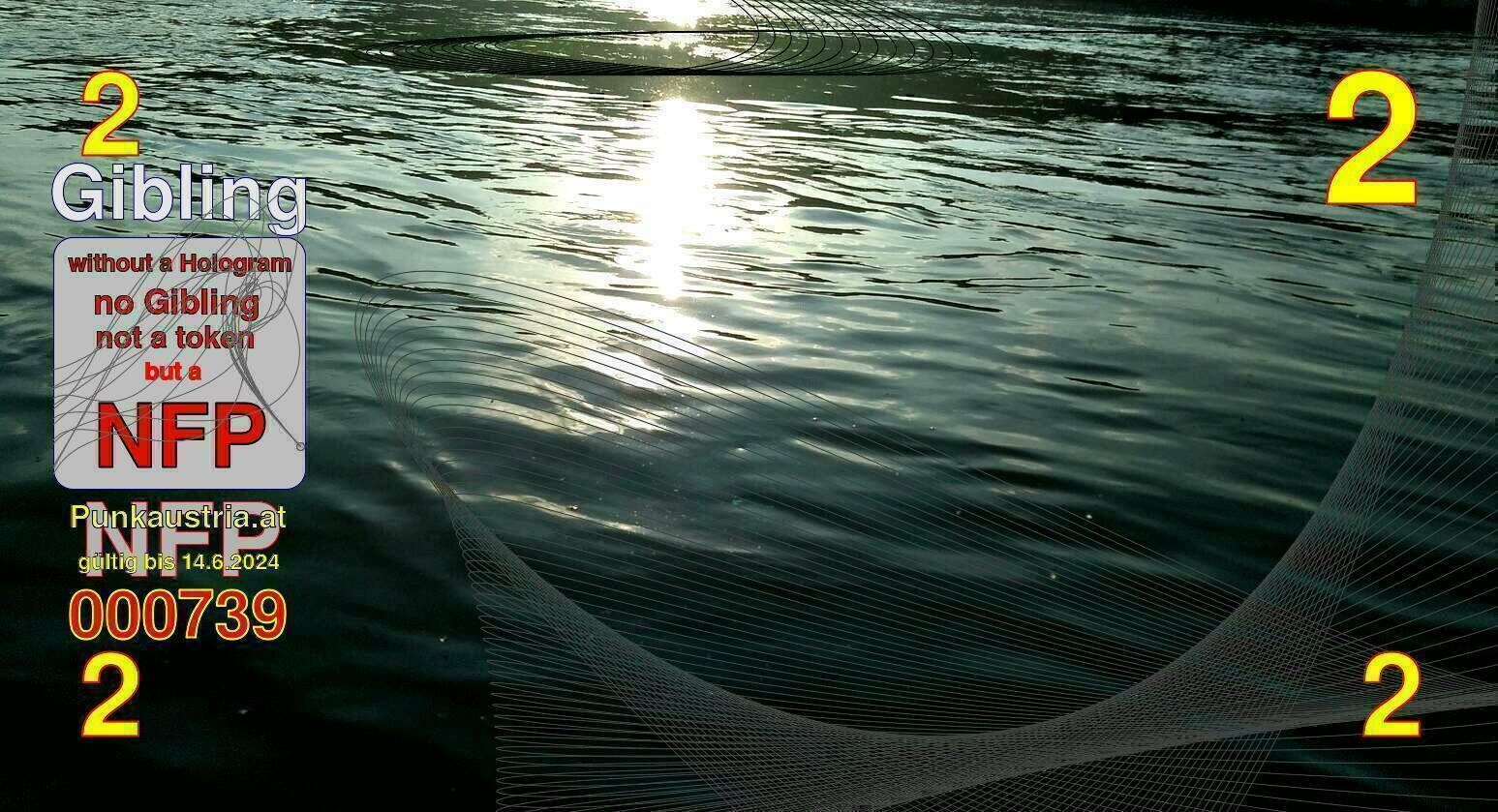 | Caption-Abstract | NFP stays for "Non Fungible Picture". The 11th Edition of our community currency Gibling is built on series of unique pictures. Each image file is unique by serial number and has a own a sha256 checksum. This data is stored in the metatags of the next picture of the series. In the metatags of the first image of the series you can find this text signed in our cryptocurrency Givecoin, created in 2014; NFPs is a fork of the Givecoin blockchain. With the NFPs we extend our ECO system in the context of process art. In this way, the Infolab of the Stadtwerkstatt wants to show another critical position on the logical truths in the new digital information society. The serial number of this image is 000739 and can also be found in the metatag "Original Transmission Reference". The checksum of the previous image is b116929ea5a6a5ab63cad8f09bebc68a46473b94a594be7ef6ae817ed307e660 and is also stored in the metatag: "Edit Status". Your bitcoinaddress: 1ANpHbCVYNovZs1JbsVD57YgZGQ1U85MnC. Your Givecoinaddress:Is printed on the back of the Gibling. To keep the process open, visit https://gibling.stwst.at and follow the instructions." |
