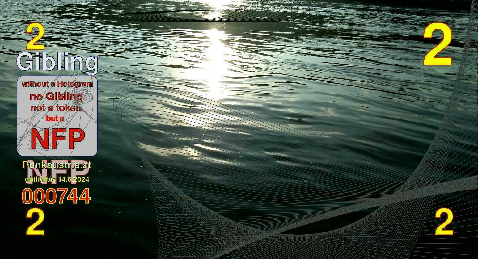 | Caption-Abstract | NFP stays for "Non Fungible Picture". The 11th Edition of our community currency Gibling is built on series of unique pictures. Each image file is unique by serial number and has a own a sha256 checksum. This data is stored in the metatags of the next picture of the series. In the metatags of the first image of the series you can find this text signed in our cryptocurrency Givecoin, created in 2014; NFPs is a fork of the Givecoin blockchain. With the NFPs we extend our ECO system in the context of process art. In this way, the Infolab of the Stadtwerkstatt wants to show another critical position on the logical truths in the new digital information society. The serial number of this image is 000744 and can also be found in the metatag "Original Transmission Reference". The checksum of the previous image is 0394a6ce103cdb131fc089a3f654dc95028c6aeb623cf71d7484a33f4f051d1c and is also stored in the metatag: "Edit Status". Your bitcoinaddress: 1AT8odwGQ6b4zt7r1mRhB58GPkuNZffjxv. Your Givecoinaddress:Is printed on the back of the Gibling. To keep the process open, visit https://gibling.stwst.at and follow the instructions." |