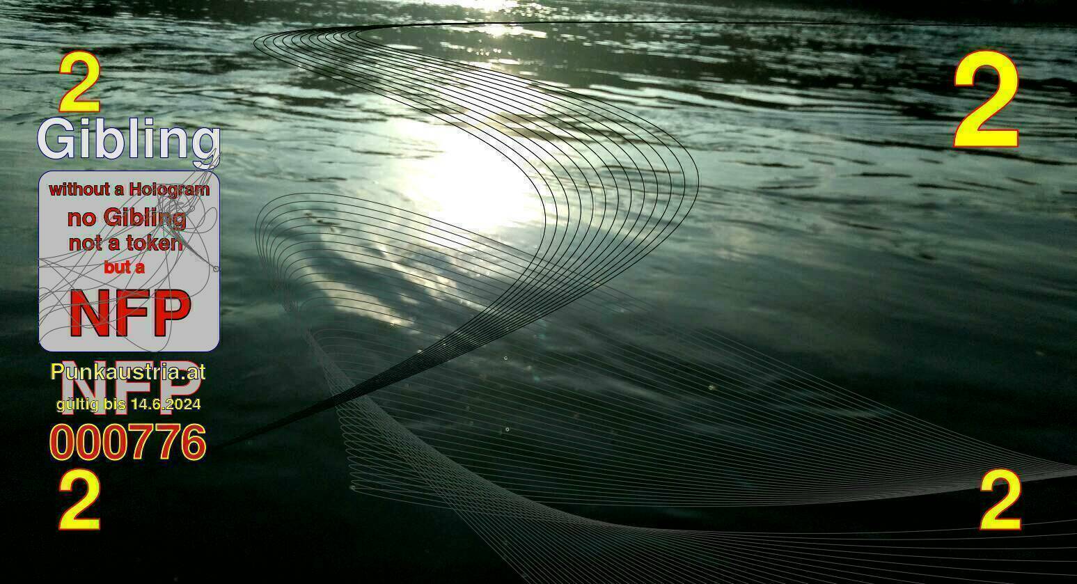 | Caption-Abstract | NFP stays for "Non Fungible Picture". The 11th Edition of our community currency Gibling is built on series of unique pictures. Each image file is unique by serial number and has a own a sha256 checksum. This data is stored in the metatags of the next picture of the series. In the metatags of the first image of the series you can find this text signed in our cryptocurrency Givecoin, created in 2014; NFPs is a fork of the Givecoin blockchain. With the NFPs we extend our ECO system in the context of process art. In this way, the Infolab of the Stadtwerkstatt wants to show another critical position on the logical truths in the new digital information society. The serial number of this image is 000776 and can also be found in the metatag "Original Transmission Reference". The checksum of the previous image is 8da6623db46915219427adb05a435a2709937438b226bdc321f3c8c5bb9b1f0e and is also stored in the metatag: "Edit Status". Your bitcoinaddress: 1AmwbEU8h5RWMMazFaLG4nBjFrvijvmg6x. Your Givecoinaddress:Is printed on the back of the Gibling. To keep the process open, visit https://gibling.stwst.at and follow the instructions." |