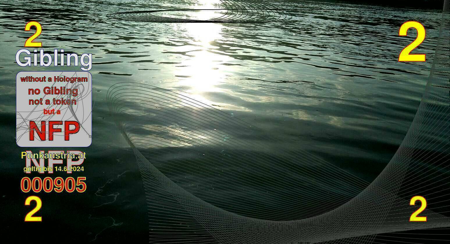 | Caption-Abstract | NFP stays for "Non Fungible Picture". The 11th Edition of our community currency Gibling is built on series of unique pictures. Each image file is unique by serial number and has a own a sha256 checksum. This data is stored in the metatags of the next picture of the series. In the metatags of the first image of the series you can find this text signed in our cryptocurrency Givecoin, created in 2014; NFPs is a fork of the Givecoin blockchain. With the NFPs we extend our ECO system in the context of process art. In this way, the Infolab of the Stadtwerkstatt wants to show another critical position on the logical truths in the new digital information society. The serial number of this image is 000905 and can also be found in the metatag "Original Transmission Reference". The checksum of the previous image is 078a01db9fb997f2af7eb1d85597d8c466ea2f1b4fbf89b9224b0d3dc239e5cd and is also stored in the metatag: "Edit Status". Your bitcoinaddress: 1C8Yo2MbEAjVT5WCYgcrdVCEszjEGSZEFn. Your Givecoinaddress:Is printed on the back of the Gibling. To keep the process open, visit https://gibling.stwst.at and follow the instructions." |