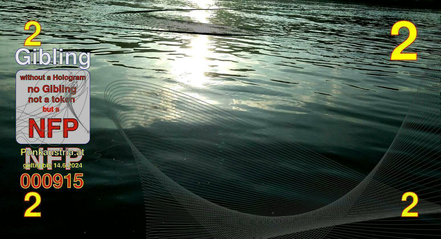 | Caption-Abstract | NFP stays for "Non Fungible Picture". The 11th Edition of our community currency Gibling is built on series of unique pictures. Each image file is unique by serial number and has a own a sha256 checksum. This data is stored in the metatags of the next picture of the series. In the metatags of the first image of the series you can find this text signed in our cryptocurrency Givecoin, created in 2014; NFPs is a fork of the Givecoin blockchain. With the NFPs we extend our ECO system in the context of process art. In this way, the Infolab of the Stadtwerkstatt wants to show another critical position on the logical truths in the new digital information society. The serial number of this image is 000915 and can also be found in the metatag "Original Transmission Reference". The checksum of the previous image is e957c0785040d87f454d043c530138d965d65b02c83badb3fd2c71630fb62f81 and is also stored in the metatag: "Edit Status". Your bitcoinaddress: 1CG3uWFQnxox1h9ByKqPxKSgRwThdLu3JV. Your Givecoinaddress:Is printed on the back of the Gibling. To keep the process open, visit https://gibling.stwst.at and follow the instructions." |