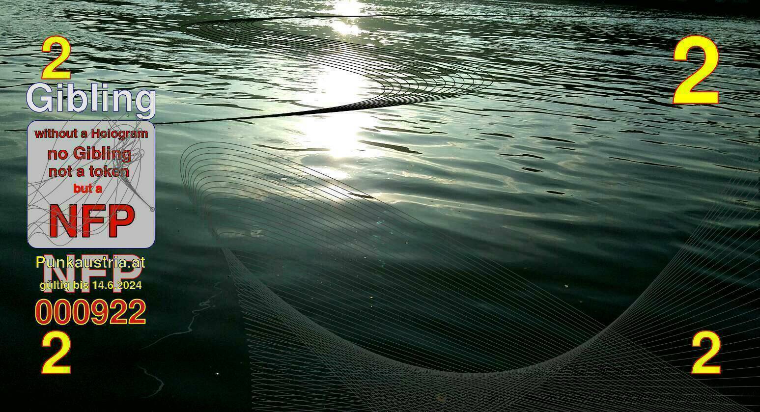 | Caption-Abstract | NFP stays for "Non Fungible Picture". The 11th Edition of our community currency Gibling is built on series of unique pictures. Each image file is unique by serial number and has a own a sha256 checksum. This data is stored in the metatags of the next picture of the series. In the metatags of the first image of the series you can find this text signed in our cryptocurrency Givecoin, created in 2014; NFPs is a fork of the Givecoin blockchain. With the NFPs we extend our ECO system in the context of process art. In this way, the Infolab of the Stadtwerkstatt wants to show another critical position on the logical truths in the new digital information society. The serial number of this image is 000922 and can also be found in the metatag "Original Transmission Reference". The checksum of the previous image is daf426682c0b839de4945581bb349e046003e697576fcbd912e6d2d658c3329c and is also stored in the metatag: "Edit Status". Your bitcoinaddress: 1CLbEvhciLsoUCg8PPVdmGgRBf8qSikwcb. Your Givecoinaddress:Is printed on the back of the Gibling. To keep the process open, visit https://gibling.stwst.at and follow the instructions." |