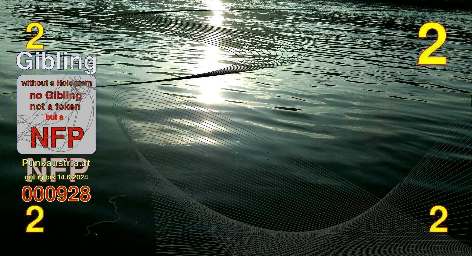 | Caption-Abstract | NFP stays for "Non Fungible Picture". The 11th Edition of our community currency Gibling is built on series of unique pictures. Each image file is unique by serial number and has a own a sha256 checksum. This data is stored in the metatags of the next picture of the series. In the metatags of the first image of the series you can find this text signed in our cryptocurrency Givecoin, created in 2014; NFPs is a fork of the Givecoin blockchain. With the NFPs we extend our ECO system in the context of process art. In this way, the Infolab of the Stadtwerkstatt wants to show another critical position on the logical truths in the new digital information society. The serial number of this image is 000928 and can also be found in the metatag "Original Transmission Reference". The checksum of the previous image is 3ee18dd023aa03d49e01c3a7386af1a412f5885f89a8daa90749117e55e47618 and is also stored in the metatag: "Edit Status". Your bitcoinaddress: 1CP8nrqkQ3xcc4W48dwgFZoMvL4zEQ9Ei5. Your Givecoinaddress:Is printed on the back of the Gibling. To keep the process open, visit https://gibling.stwst.at and follow the instructions." |