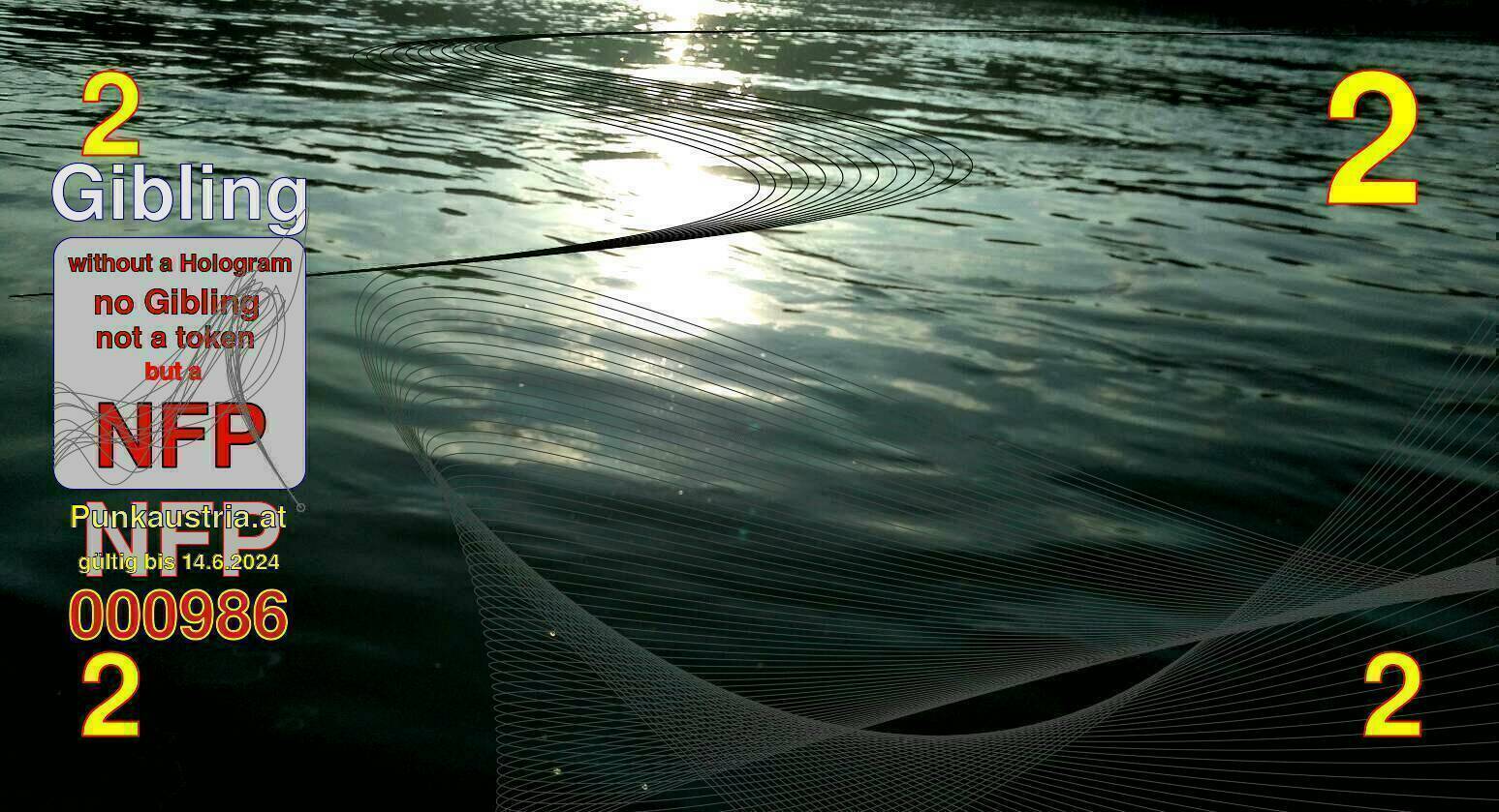 | Caption-Abstract | NFP stays for "Non Fungible Picture". The 11th Edition of our community currency Gibling is built on series of unique pictures. Each image file is unique by serial number and has a own a sha256 checksum. This data is stored in the metatags of the next picture of the series. In the metatags of the first image of the series you can find this text signed in our cryptocurrency Givecoin, created in 2014; NFPs is a fork of the Givecoin blockchain. With the NFPs we extend our ECO system in the context of process art. In this way, the Infolab of the Stadtwerkstatt wants to show another critical position on the logical truths in the new digital information society. The serial number of this image is 000986 and can also be found in the metatag "Original Transmission Reference". The checksum of the previous image is db6ff43499e23f002f982e60e2f059193aa3a726f22639bb6637e8866793d2c4 and is also stored in the metatag: "Edit Status". Your bitcoinaddress: 1Cy9Nvi96HPCFXzz7KT87wjn5dVYC6envY. Your Givecoinaddress:Is printed on the back of the Gibling. To keep the process open, visit https://gibling.stwst.at and follow the instructions." |