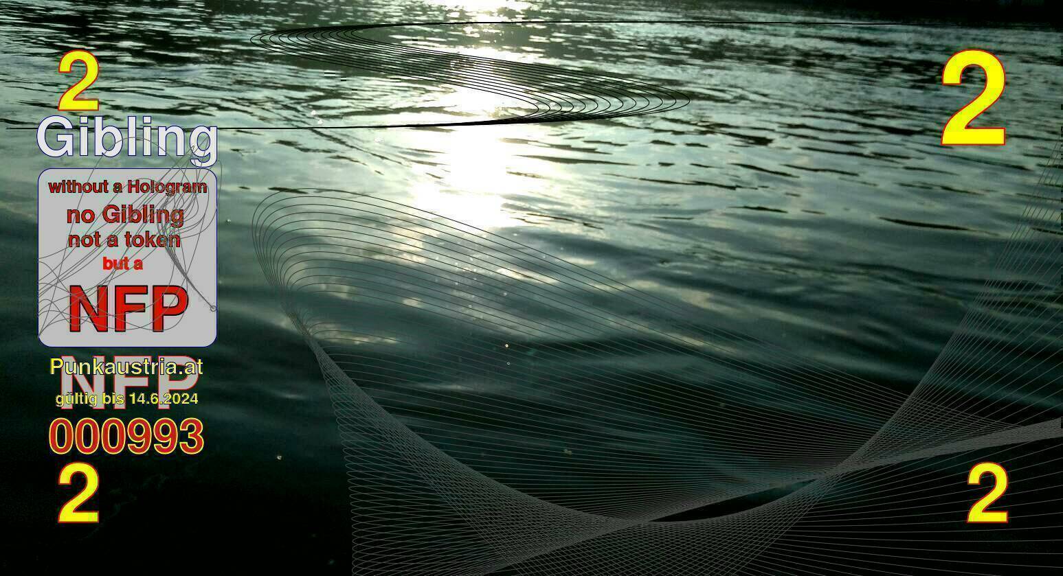 | Caption-Abstract | NFP stays for "Non Fungible Picture". The 11th Edition of our community currency Gibling is built on series of unique pictures. Each image file is unique by serial number and has a own a sha256 checksum. This data is stored in the metatags of the next picture of the series. In the metatags of the first image of the series you can find this text signed in our cryptocurrency Givecoin, created in 2014; NFPs is a fork of the Givecoin blockchain. With the NFPs we extend our ECO system in the context of process art. In this way, the Infolab of the Stadtwerkstatt wants to show another critical position on the logical truths in the new digital information society. The serial number of this image is 000993 and can also be found in the metatag "Original Transmission Reference". The checksum of the previous image is 96c409a4271cd908043947f302d8657f09201f7ab310e06c37d66f54bab6f66f and is also stored in the metatag: "Edit Status". Your bitcoinaddress: 1D2X7KsE4jCskKF5GwxNf3UB54rGX3VAWv. Your Givecoinaddress:Is printed on the back of the Gibling. To keep the process open, visit https://gibling.stwst.at and follow the instructions." |