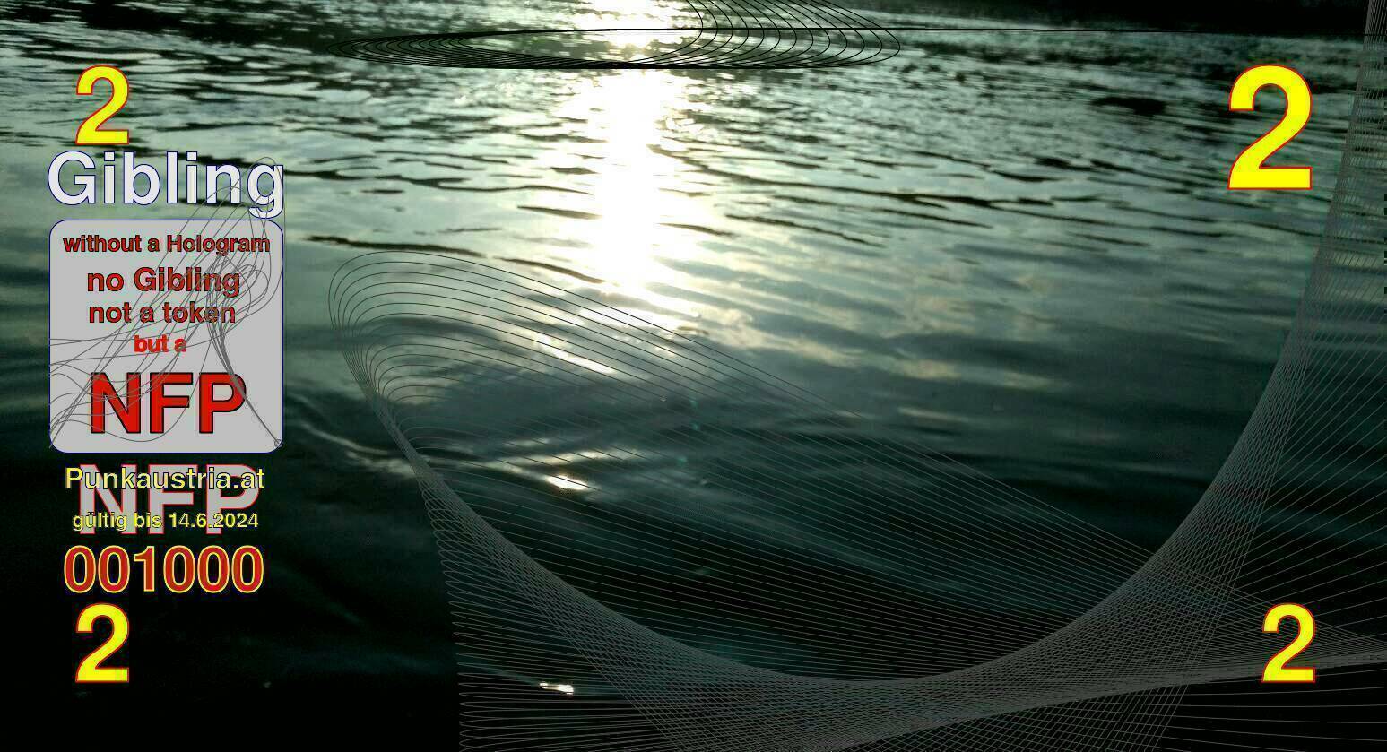 | Caption-Abstract | NFP stays for "Non Fungible Picture". The 11th Edition of our community currency Gibling is built on series of unique pictures. Each image file is unique by serial number and has a own a sha256 checksum. This data is stored in the metatags of the next picture of the series. In the metatags of the first image of the series you can find this text signed in our cryptocurrency Givecoin, created in 2014; NFPs is a fork of the Givecoin blockchain. With the NFPs we extend our ECO system in the context of process art. In this way, the Infolab of the Stadtwerkstatt wants to show another critical position on the logical truths in the new digital information society. The serial number of this image is 001000 and can also be found in the metatag "Original Transmission Reference". The checksum of the previous image is 33676d2af39c3d6e67558f2d260f322b0382fb5833e8ac79852319126791fc6f and is also stored in the metatag: "Edit Status". Your bitcoinaddress: 1D5jj84pcrDeNAmbodwMkrpAPt7WFQhkgD. Your Givecoinaddress:Is printed on the back of the Gibling. To keep the process open, visit https://gibling.stwst.at and follow the instructions." |