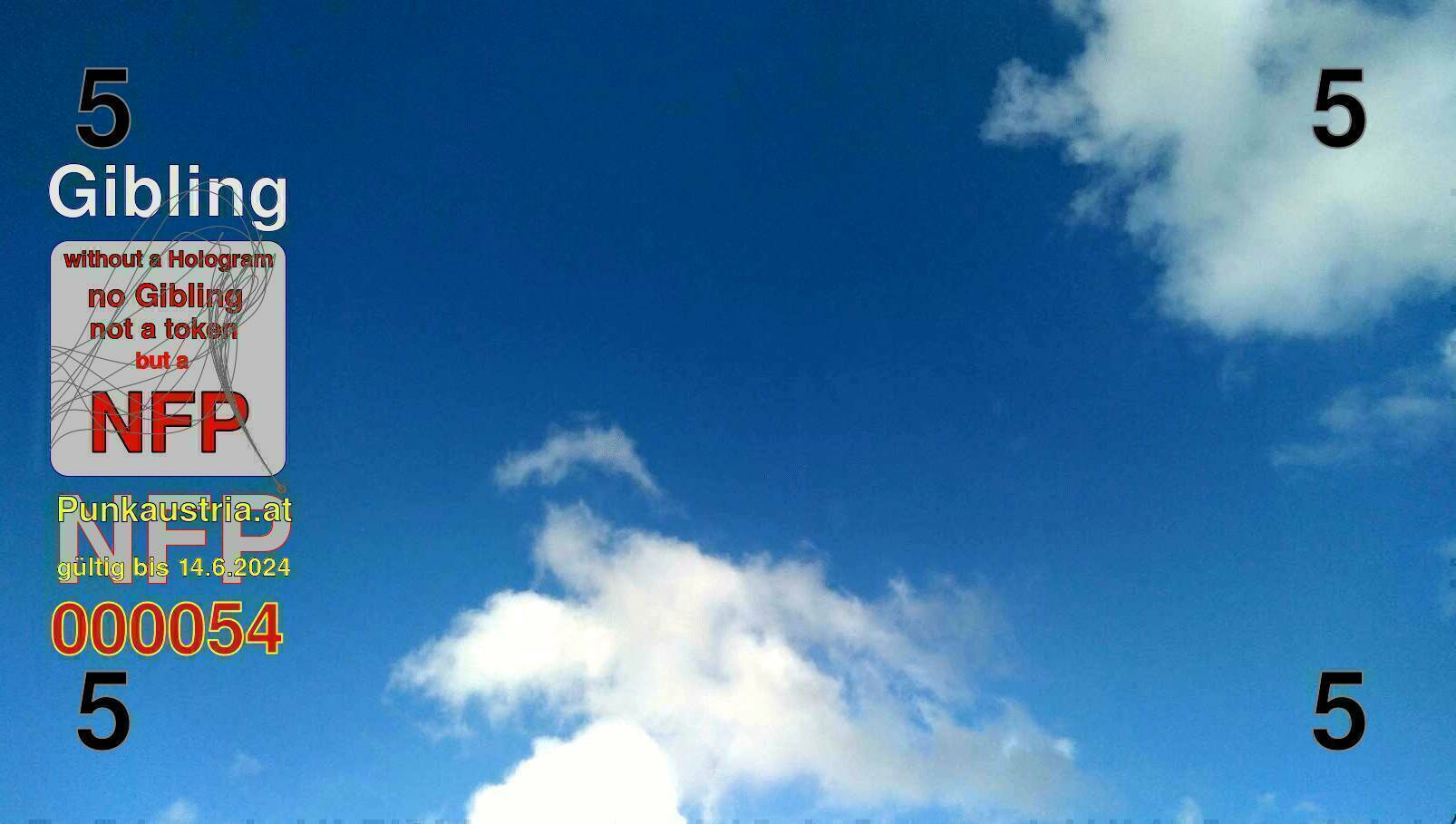 | Caption-Abstract | NFP stays for "Non Fungible Picture". The 11th Edition of our community currency Gibling is built on series of unique pictures. Each image file is unique by serial number and has a own a sha256 checksum. This data is stored in the metatags of the next picture of the series. In the metatags of the first image of the series you can find this text signed in our cryptocurrency Givecoin, created in 2014; NFPs is a fork of the Givecoin blockchain. With the NFPs we extend our ECO system in the context of process art. In this way, the Infolab of the Stadtwerkstatt wants to show another critical position on the logical truths in the new digital information society. The serial number of this image is 000054 and can also be found in the metatag "Original Transmission Reference". The checksum of the previous image is 66c2539818cbe646a3641d973f51817f666c545ca6f34cff75b571bbfd954121 and is also stored in the metatag: "Edit Status". Your bitcoinaddress: 1b6jv2gHvj1pg9L5pFbaZDzkvk5wwVAJc. Your Givecoinaddress:Is printed on the back of the Gibling. To keep the process open, visit https://gibling.stwst.at and follow the instructions." |