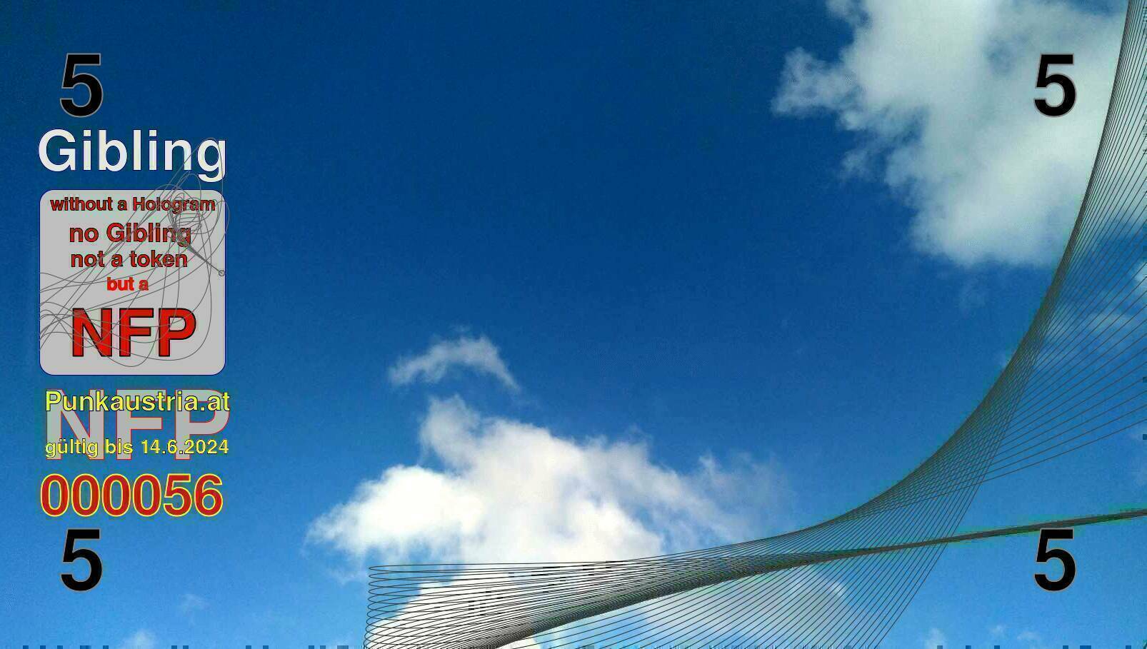 | Caption-Abstract | NFP stays for "Non Fungible Picture". The 11th Edition of our community currency Gibling is built on series of unique pictures. Each image file is unique by serial number and has a own a sha256 checksum. This data is stored in the metatags of the next picture of the series. In the metatags of the first image of the series you can find this text signed in our cryptocurrency Givecoin, created in 2014; NFPs is a fork of the Givecoin blockchain. With the NFPs we extend our ECO system in the context of process art. In this way, the Infolab of the Stadtwerkstatt wants to show another critical position on the logical truths in the new digital information society. The serial number of this image is 000056 and can also be found in the metatag "Original Transmission Reference". The checksum of the previous image is 08867801501e9b8c0fd382535a2c1e7e13db2030ad447d366d0a30f8c2b88b60 and is also stored in the metatag: "Edit Status". Your bitcoinaddress: 1cXdamjVUFYDcbVGLctiy9JTPvm7hmLJT. Your Givecoinaddress:Is printed on the back of the Gibling. To keep the process open, visit https://gibling.stwst.at and follow the instructions." |