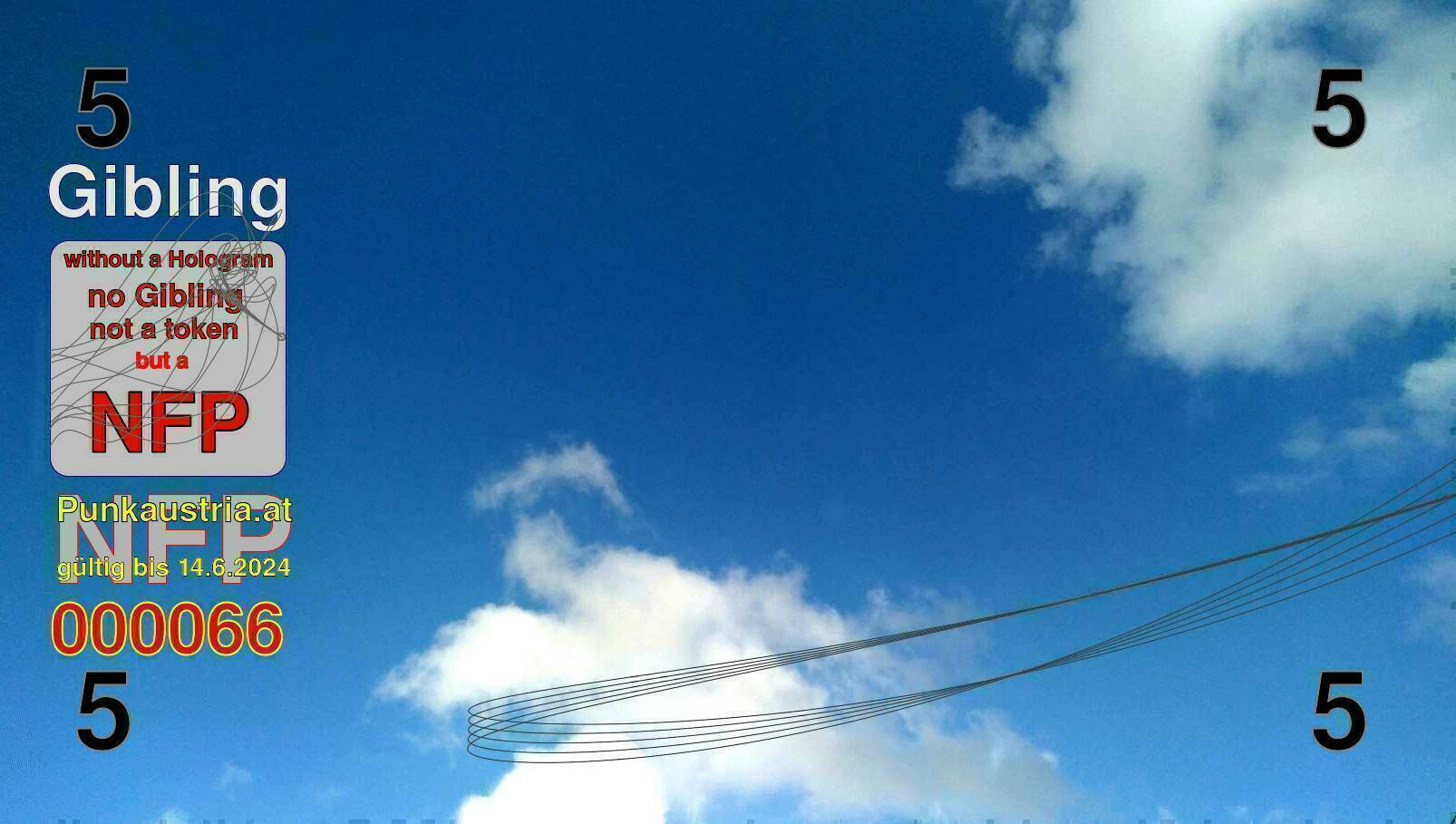| Caption-Abstract | NFP stays for "Non Fungible Picture". The 11th Edition of our community currency Gibling is built on series of unique pictures. Each image file is unique by serial number and has a own a sha256 checksum. This data is stored in the metatags of the next picture of the series. In the metatags of the first image of the series you can find this text signed in our cryptocurrency Givecoin, created in 2014; NFPs is a fork of the Givecoin blockchain. With the NFPs we extend our ECO system in the context of process art. In this way, the Infolab of the Stadtwerkstatt wants to show another critical position on the logical truths in the new digital information society. The serial number of this image is 000066 and can also be found in the metatag "Original Transmission Reference". The checksum of the previous image is 01ce4e3d476ddb88a9c8864b84a6f889ff0b7134b76a24bf4b74fcf084a1871e and is also stored in the metatag: "Edit Status". Your bitcoinaddress: 1kJ9hxkeeXaaZ7X5w6bvNLsETpE2c677e. Your Givecoinaddress:Is printed on the back of the Gibling. To keep the process open, visit https://gibling.stwst.at and follow the instructions." |