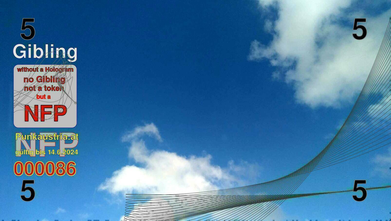 | Caption-Abstract | NFP stays for "Non Fungible Picture". The 11th Edition of our community currency Gibling is built on series of unique pictures. Each image file is unique by serial number and has a own a sha256 checksum. This data is stored in the metatags of the next picture of the series. In the metatags of the first image of the series you can find this text signed in our cryptocurrency Givecoin, created in 2014; NFPs is a fork of the Givecoin blockchain. With the NFPs we extend our ECO system in the context of process art. In this way, the Infolab of the Stadtwerkstatt wants to show another critical position on the logical truths in the new digital information society. The serial number of this image is 000086 and can also be found in the metatag "Original Transmission Reference". The checksum of the previous image is 7905507174e9baa88a27f6cb35c9d2fed89be62012bf3ac21e89a3f299f100e9 and is also stored in the metatag: "Edit Status". Your bitcoinaddress: 122xeBfSDeYypt2UnsSDg461EAobF9Neev. Your Givecoinaddress:Is printed on the back of the Gibling. To keep the process open, visit https://gibling.stwst.at and follow the instructions." |