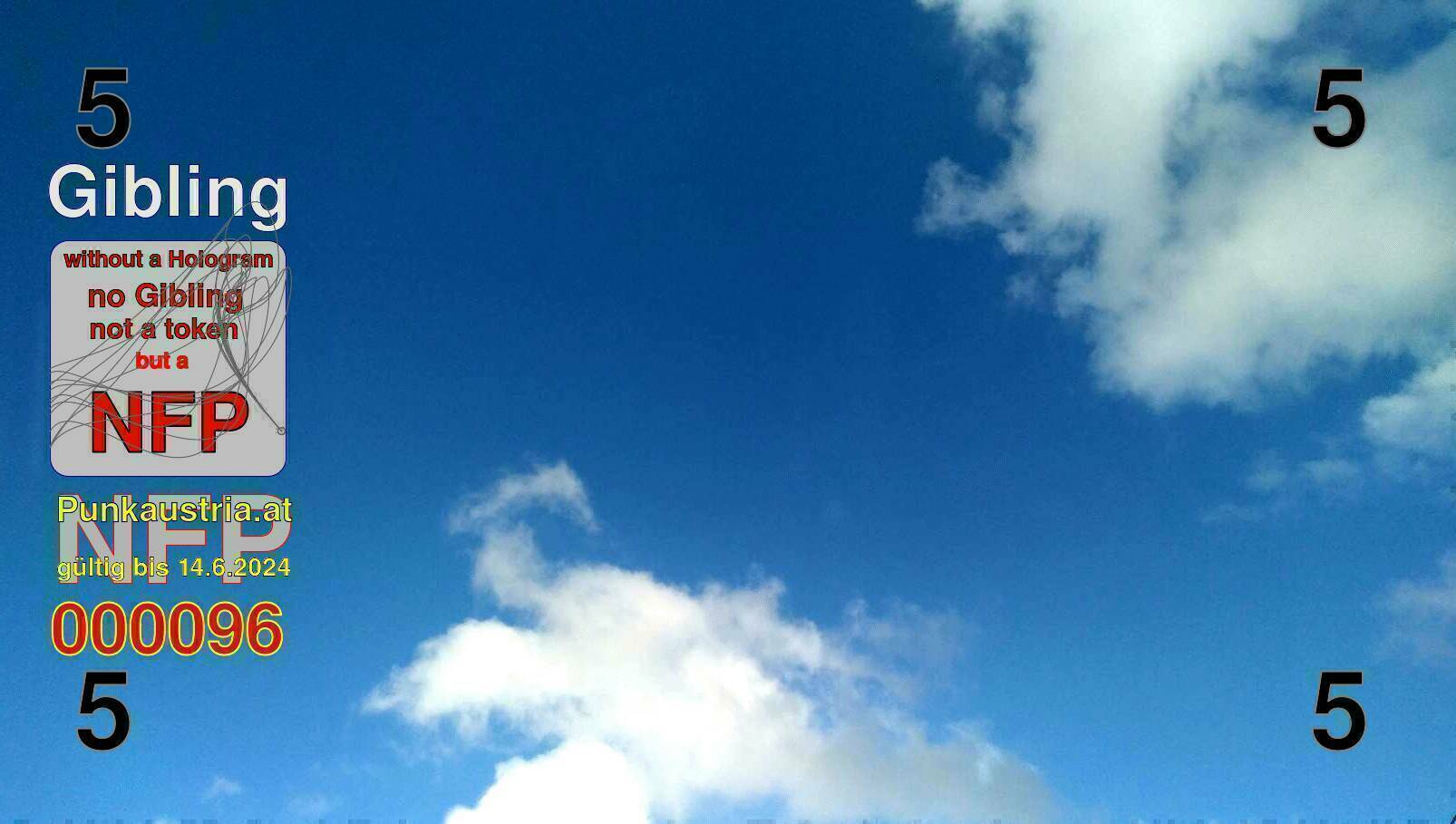 | Caption-Abstract | NFP stays for "Non Fungible Picture". The 11th Edition of our community currency Gibling is built on series of unique pictures. Each image file is unique by serial number and has a own a sha256 checksum. This data is stored in the metatags of the next picture of the series. In the metatags of the first image of the series you can find this text signed in our cryptocurrency Givecoin, created in 2014; NFPs is a fork of the Givecoin blockchain. With the NFPs we extend our ECO system in the context of process art. In this way, the Infolab of the Stadtwerkstatt wants to show another critical position on the logical truths in the new digital information society. The serial number of this image is 000096 and can also be found in the metatag "Original Transmission Reference". The checksum of the previous image is 48a687c4fdd96150d9e3154d810111f847bea6ceac75fa5a045566b7b4231c3f and is also stored in the metatag: "Edit Status". Your bitcoinaddress: 127VU6ss4G8bFyhUwUpWYE1SzEkXLJZTJN. Your Givecoinaddress:Is printed on the back of the Gibling. To keep the process open, visit https://gibling.stwst.at and follow the instructions." |