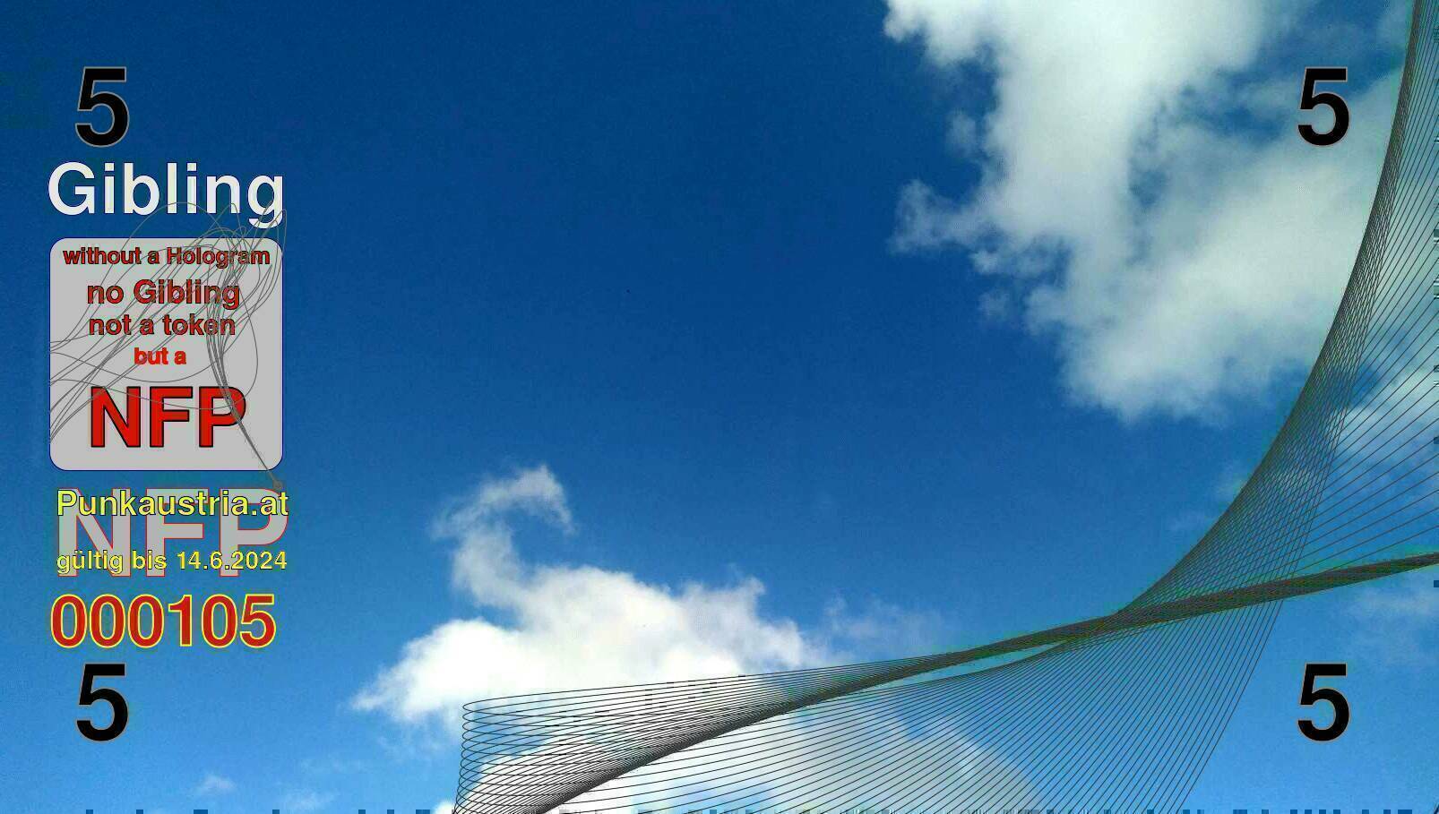| Caption-Abstract | NFP stays for "Non Fungible Picture". The 11th Edition of our community currency Gibling is built on series of unique pictures. Each image file is unique by serial number and has a own a sha256 checksum. This data is stored in the metatags of the next picture of the series. In the metatags of the first image of the series you can find this text signed in our cryptocurrency Givecoin, created in 2014; NFPs is a fork of the Givecoin blockchain. With the NFPs we extend our ECO system in the context of process art. In this way, the Infolab of the Stadtwerkstatt wants to show another critical position on the logical truths in the new digital information society. The serial number of this image is 000105 and can also be found in the metatag "Original Transmission Reference". The checksum of the previous image is 8619b40cac5e07f9e4ffb034d5249e84c2fbe92ed3a0961b3027ea14ca549d0d and is also stored in the metatag: "Edit Status". Your bitcoinaddress: 12DzCeDeY9sLDMumX8CPHXggb4EkFWh4DF. Your Givecoinaddress:Is printed on the back of the Gibling. To keep the process open, visit https://gibling.stwst.at and follow the instructions." |