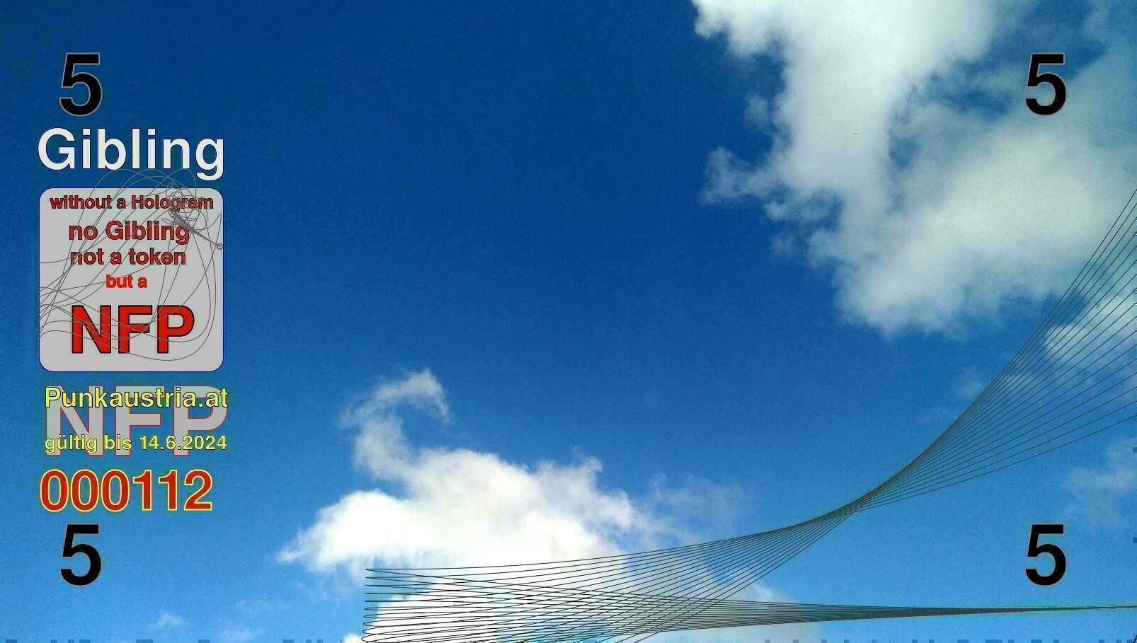 | Caption-Abstract | NFP stays for "Non Fungible Picture". The 11th Edition of our community currency Gibling is built on series of unique pictures. Each image file is unique by serial number and has a own a sha256 checksum. This data is stored in the metatags of the next picture of the series. In the metatags of the first image of the series you can find this text signed in our cryptocurrency Givecoin, created in 2014; NFPs is a fork of the Givecoin blockchain. With the NFPs we extend our ECO system in the context of process art. In this way, the Infolab of the Stadtwerkstatt wants to show another critical position on the logical truths in the new digital information society. The serial number of this image is 000112 and can also be found in the metatag "Original Transmission Reference". The checksum of the previous image is 6888d0497a5784ee762f90e9d48e003eb1711fe99548366114385e137488d08a and is also stored in the metatag: "Edit Status". Your bitcoinaddress: 12HGCGsr7hF8JpkRjpLug8gejviXrBMpx5. Your Givecoinaddress:Is printed on the back of the Gibling. To keep the process open, visit https://gibling.stwst.at and follow the instructions." |
