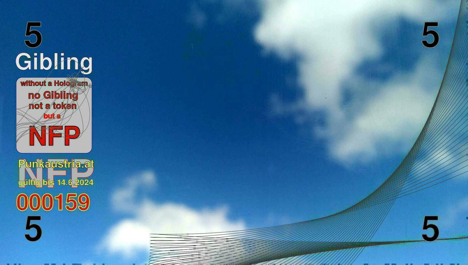 | Caption-Abstract | NFP stays for "Non Fungible Picture". The 11th Edition of our community currency Gibling is built on series of unique pictures. Each image file is unique by serial number and has a own a sha256 checksum. This data is stored in the metatags of the next picture of the series. In the metatags of the first image of the series you can find this text signed in our cryptocurrency Givecoin, created in 2014; NFPs is a fork of the Givecoin blockchain. With the NFPs we extend our ECO system in the context of process art. In this way, the Infolab of the Stadtwerkstatt wants to show another critical position on the logical truths in the new digital information society. The serial number of this image is 000159 and can also be found in the metatag "Original Transmission Reference". The checksum of the previous image is 7a5e1f8633a4f529dbd7cfb1995b9460c4d49c415cdc547e5a683b9bbc348b6a and is also stored in the metatag: "Edit Status". Your bitcoinaddress: 12tXxVyLoVX2zBz3BZh9dAiczyz2bdRV6p. Your Givecoinaddress:Is printed on the back of the Gibling. To keep the process open, visit https://gibling.stwst.at and follow the instructions." |