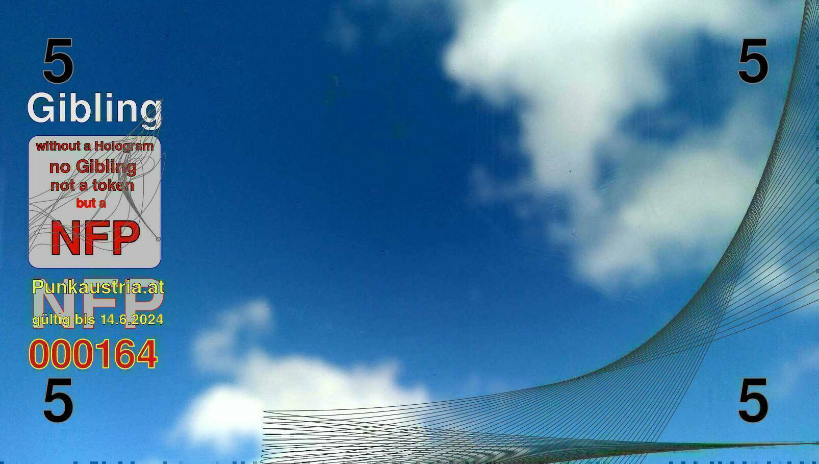 | Caption-Abstract | NFP stays for "Non Fungible Picture". The 11th Edition of our community currency Gibling is built on series of unique pictures. Each image file is unique by serial number and has a own a sha256 checksum. This data is stored in the metatags of the next picture of the series. In the metatags of the first image of the series you can find this text signed in our cryptocurrency Givecoin, created in 2014; NFPs is a fork of the Givecoin blockchain. With the NFPs we extend our ECO system in the context of process art. In this way, the Infolab of the Stadtwerkstatt wants to show another critical position on the logical truths in the new digital information society. The serial number of this image is 000164 and can also be found in the metatag "Original Transmission Reference". The checksum of the previous image is 5ae0365811db0c666bc99862ba7913dbc86e28bc0603d751f4c9cb499be8e3a2 and is also stored in the metatag: "Edit Status". Your bitcoinaddress: 12vtNurTFnYAhHfYujkg6x7wp7ondmcHLx. Your Givecoinaddress:Is printed on the back of the Gibling. To keep the process open, visit https://gibling.stwst.at and follow the instructions." |