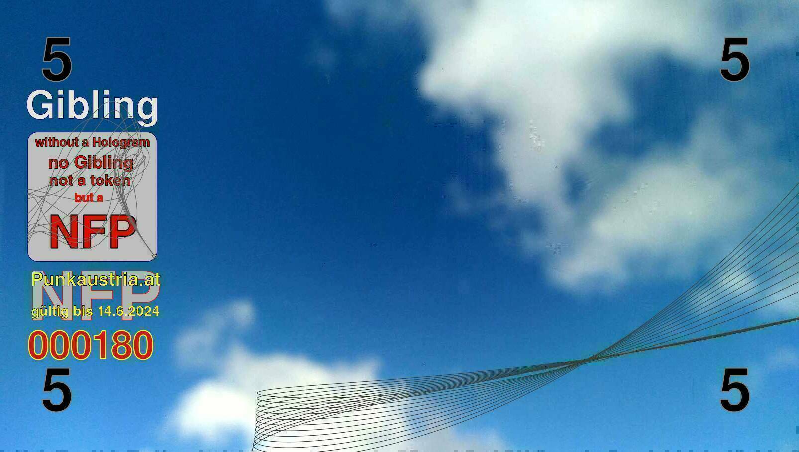 | Caption-Abstract | NFP stays for "Non Fungible Picture". The 11th Edition of our community currency Gibling is built on series of unique pictures. Each image file is unique by serial number and has a own a sha256 checksum. This data is stored in the metatags of the next picture of the series. In the metatags of the first image of the series you can find this text signed in our cryptocurrency Givecoin, created in 2014; NFPs is a fork of the Givecoin blockchain. With the NFPs we extend our ECO system in the context of process art. In this way, the Infolab of the Stadtwerkstatt wants to show another critical position on the logical truths in the new digital information society. The serial number of this image is 000180 and can also be found in the metatag "Original Transmission Reference". The checksum of the previous image is 11af6a0cfe896076f1d6fb029618a2a96344fd84b6536adedd62da51a9a10123 and is also stored in the metatag: "Edit Status". Your bitcoinaddress: 1339FeqjP5PsV77ACmk8wdtNS2m7Got3zP. Your Givecoinaddress:Is printed on the back of the Gibling. To keep the process open, visit https://gibling.stwst.at and follow the instructions." |