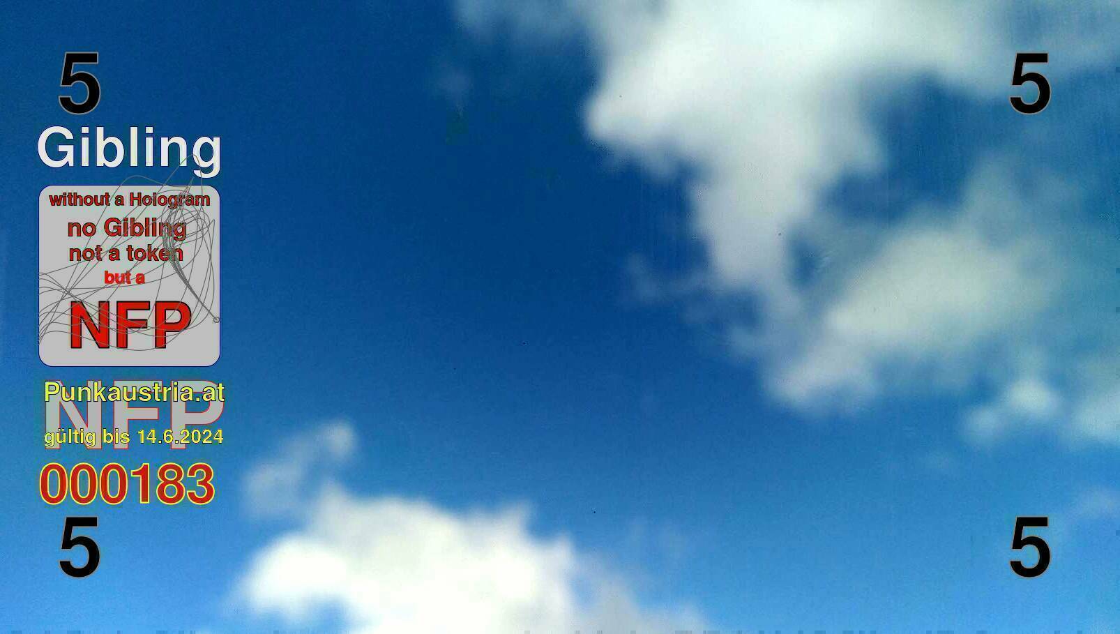 | Caption-Abstract | NFP stays for "Non Fungible Picture". The 11th Edition of our community currency Gibling is built on series of unique pictures. Each image file is unique by serial number and has a own a sha256 checksum. This data is stored in the metatags of the next picture of the series. In the metatags of the first image of the series you can find this text signed in our cryptocurrency Givecoin, created in 2014; NFPs is a fork of the Givecoin blockchain. With the NFPs we extend our ECO system in the context of process art. In this way, the Infolab of the Stadtwerkstatt wants to show another critical position on the logical truths in the new digital information society. The serial number of this image is 000183 and can also be found in the metatag "Original Transmission Reference". The checksum of the previous image is d8cf7904496be34e509725cd73e0d5a136036b15f31e7f7f441d2f689bcd5624 and is also stored in the metatag: "Edit Status". Your bitcoinaddress: 135BPPERECej3WGWvgBMxhGkLMaeeE3DLF. Your Givecoinaddress:Is printed on the back of the Gibling. To keep the process open, visit https://gibling.stwst.at and follow the instructions." |