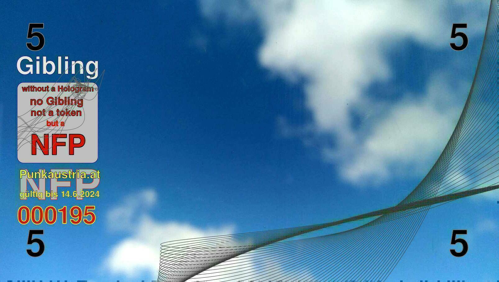 | Caption-Abstract | NFP stays for "Non Fungible Picture". The 11th Edition of our community currency Gibling is built on series of unique pictures. Each image file is unique by serial number and has a own a sha256 checksum. This data is stored in the metatags of the next picture of the series. In the metatags of the first image of the series you can find this text signed in our cryptocurrency Givecoin, created in 2014; NFPs is a fork of the Givecoin blockchain. With the NFPs we extend our ECO system in the context of process art. In this way, the Infolab of the Stadtwerkstatt wants to show another critical position on the logical truths in the new digital information society. The serial number of this image is 000195 and can also be found in the metatag "Original Transmission Reference". The checksum of the previous image is 691d36698c5a87a5fdfc25cd3994acfee8a6a18be69ee2a011d2402cc76de240 and is also stored in the metatag: "Edit Status". Your bitcoinaddress: 13CYjSUGpYYLPi95PqeK2iPs3SAu1HK5MR. Your Givecoinaddress:Is printed on the back of the Gibling. To keep the process open, visit https://gibling.stwst.at and follow the instructions." |