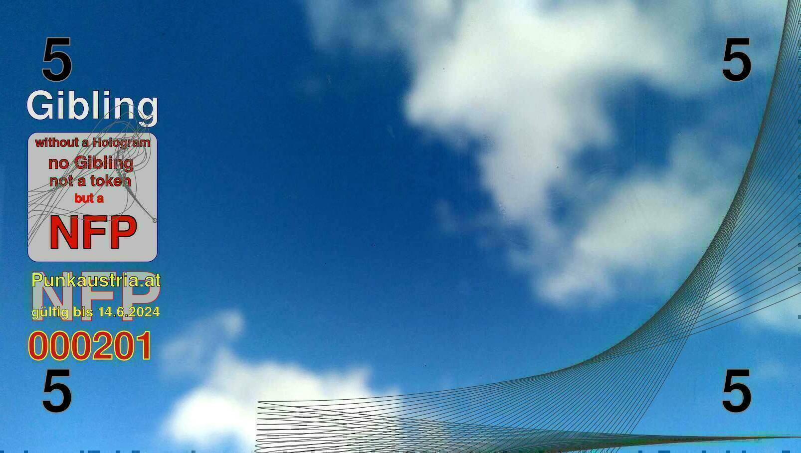 | Caption-Abstract | NFP stays for "Non Fungible Picture". The 11th Edition of our community currency Gibling is built on series of unique pictures. Each image file is unique by serial number and has a own a sha256 checksum. This data is stored in the metatags of the next picture of the series. In the metatags of the first image of the series you can find this text signed in our cryptocurrency Givecoin, created in 2014; NFPs is a fork of the Givecoin blockchain. With the NFPs we extend our ECO system in the context of process art. In this way, the Infolab of the Stadtwerkstatt wants to show another critical position on the logical truths in the new digital information society. The serial number of this image is 000201 and can also be found in the metatag "Original Transmission Reference". The checksum of the previous image is 4f51e7564247438cb1a45066397767936022247eb3db62b91e9d0a32c8c77708 and is also stored in the metatag: "Edit Status". Your bitcoinaddress: 13KwV6Fsxst1yV2sqTGBCLL3Es1tWbpzg2. Your Givecoinaddress:Is printed on the back of the Gibling. To keep the process open, visit https://gibling.stwst.at and follow the instructions." |